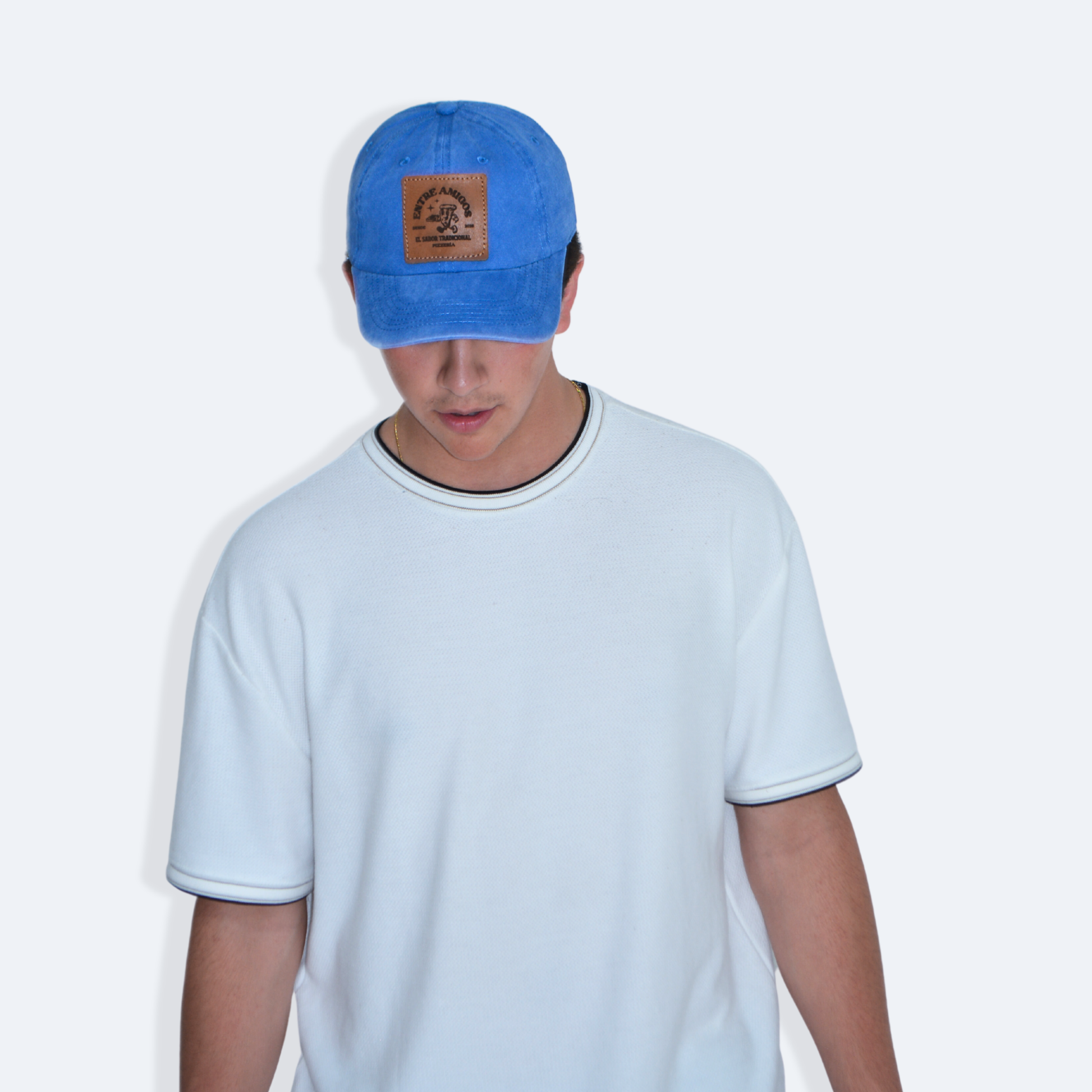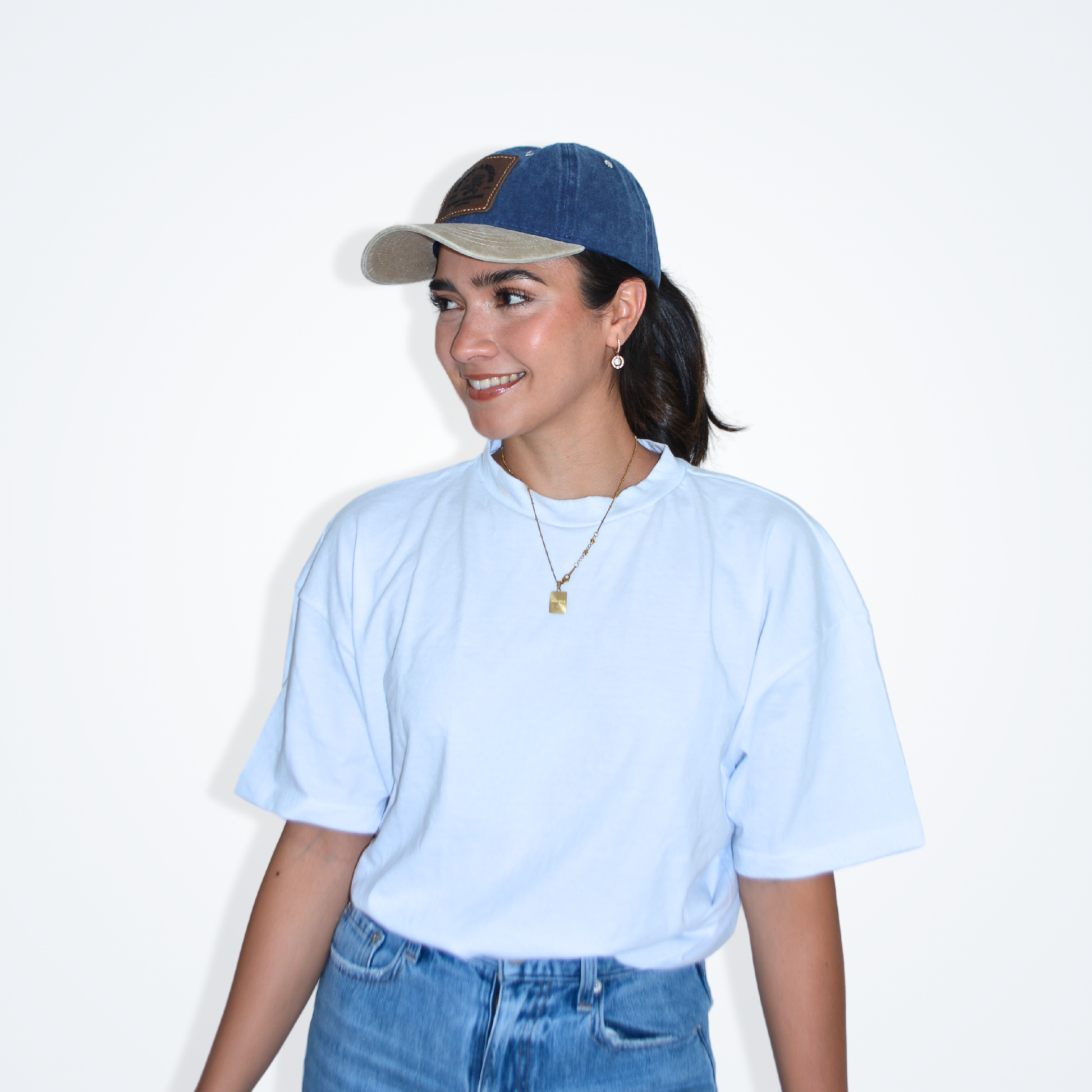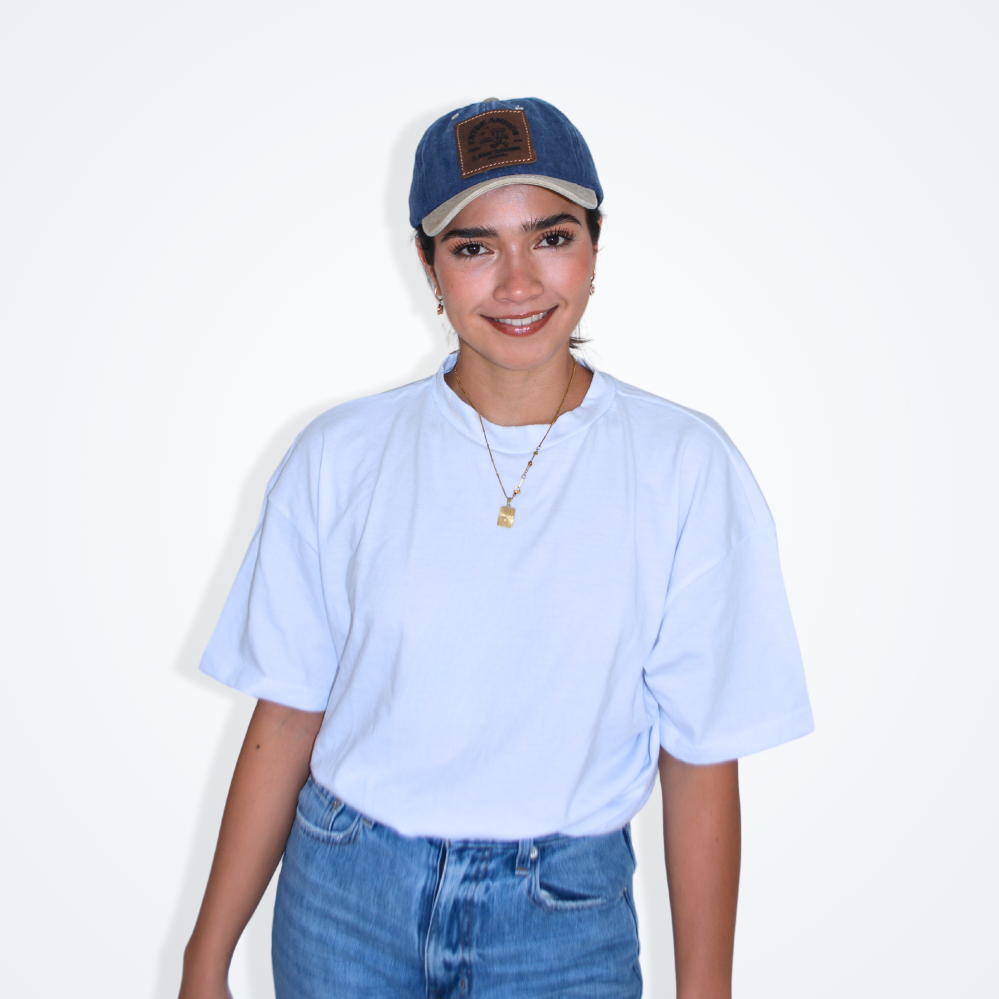Gorra de algodon con parche de piel con cinta de velcro ajustable.
