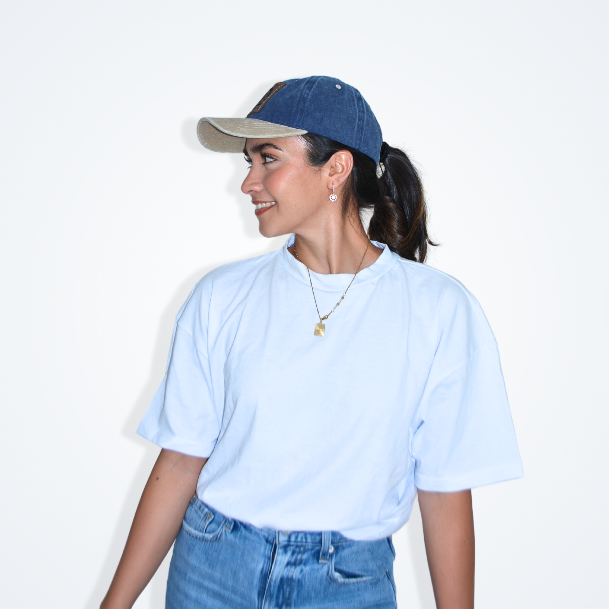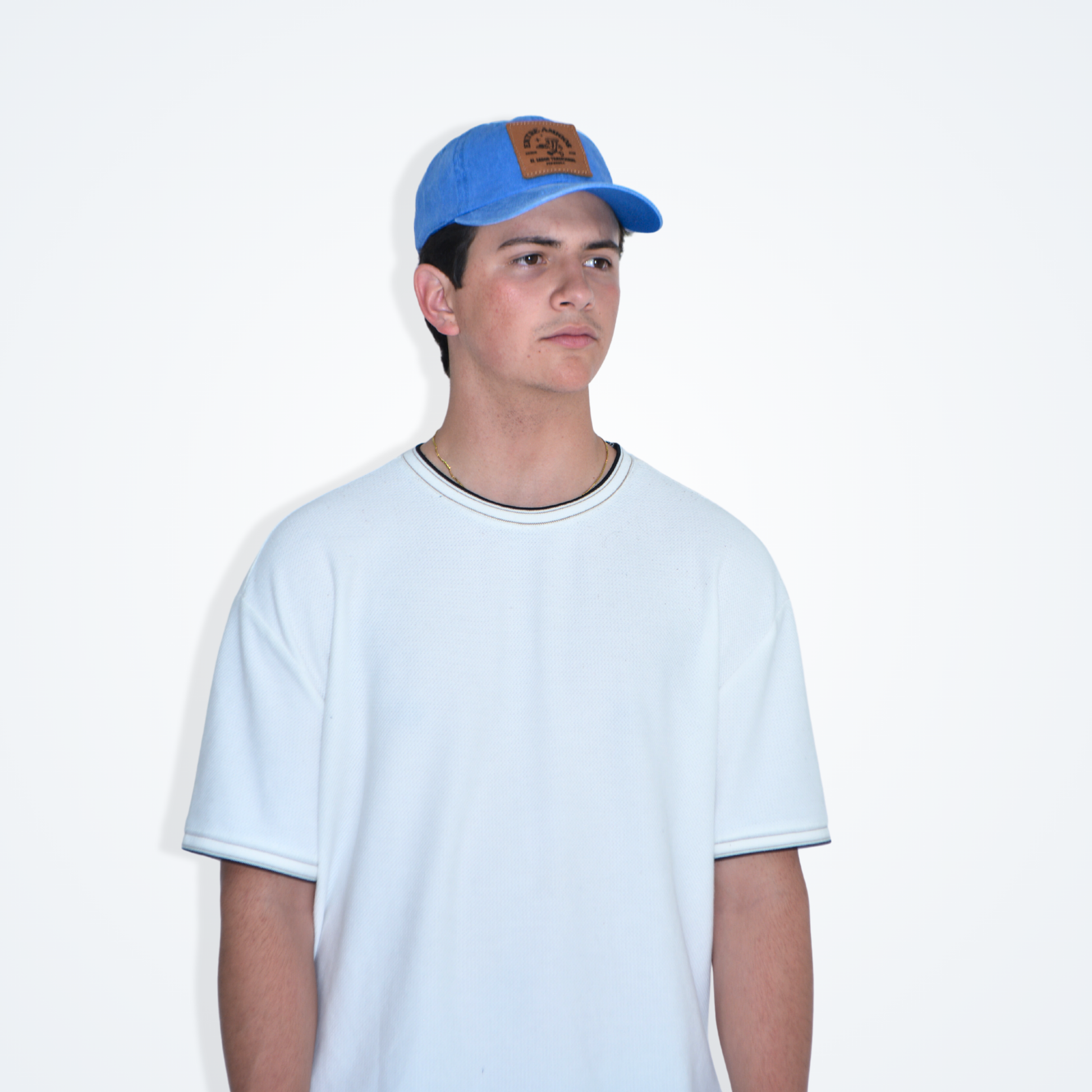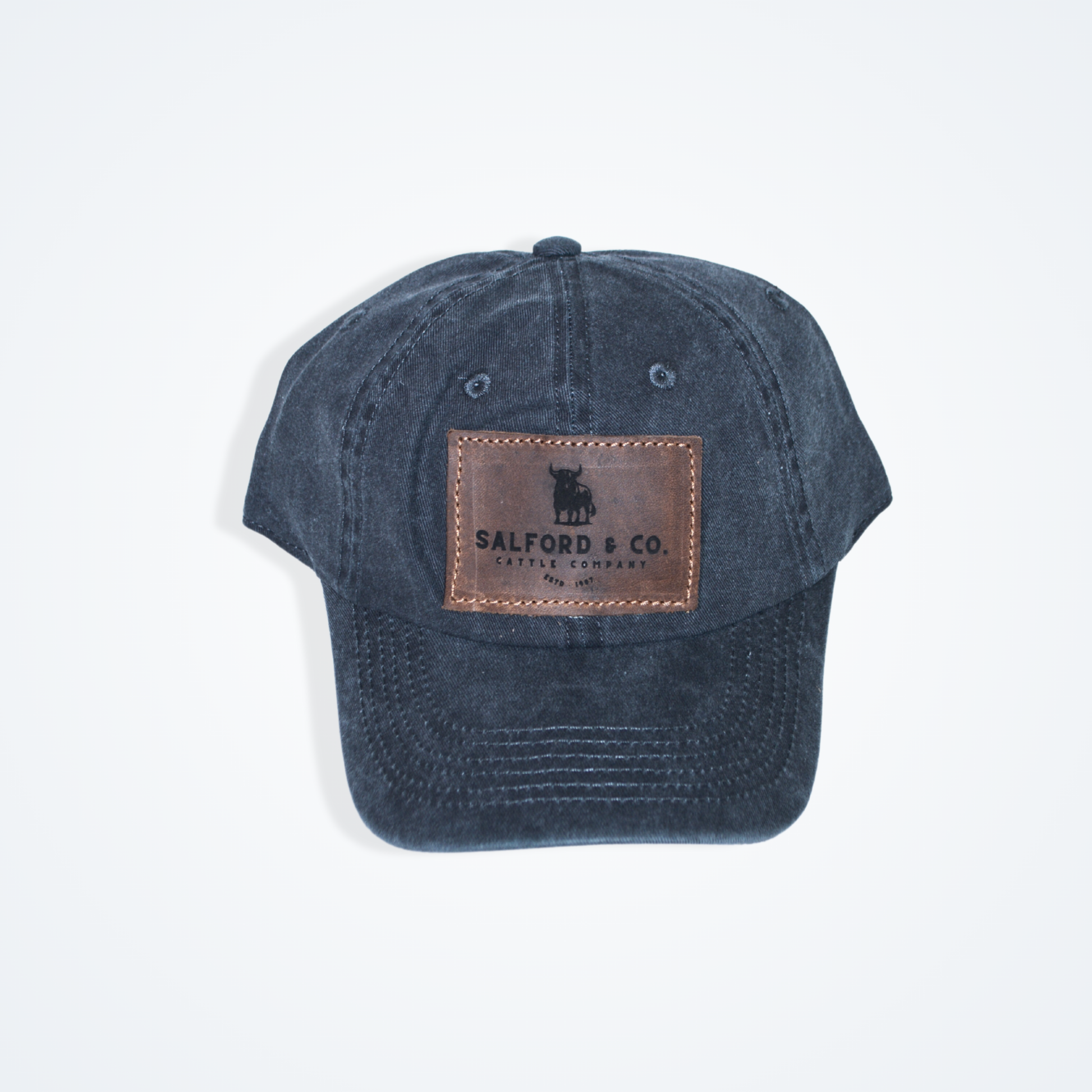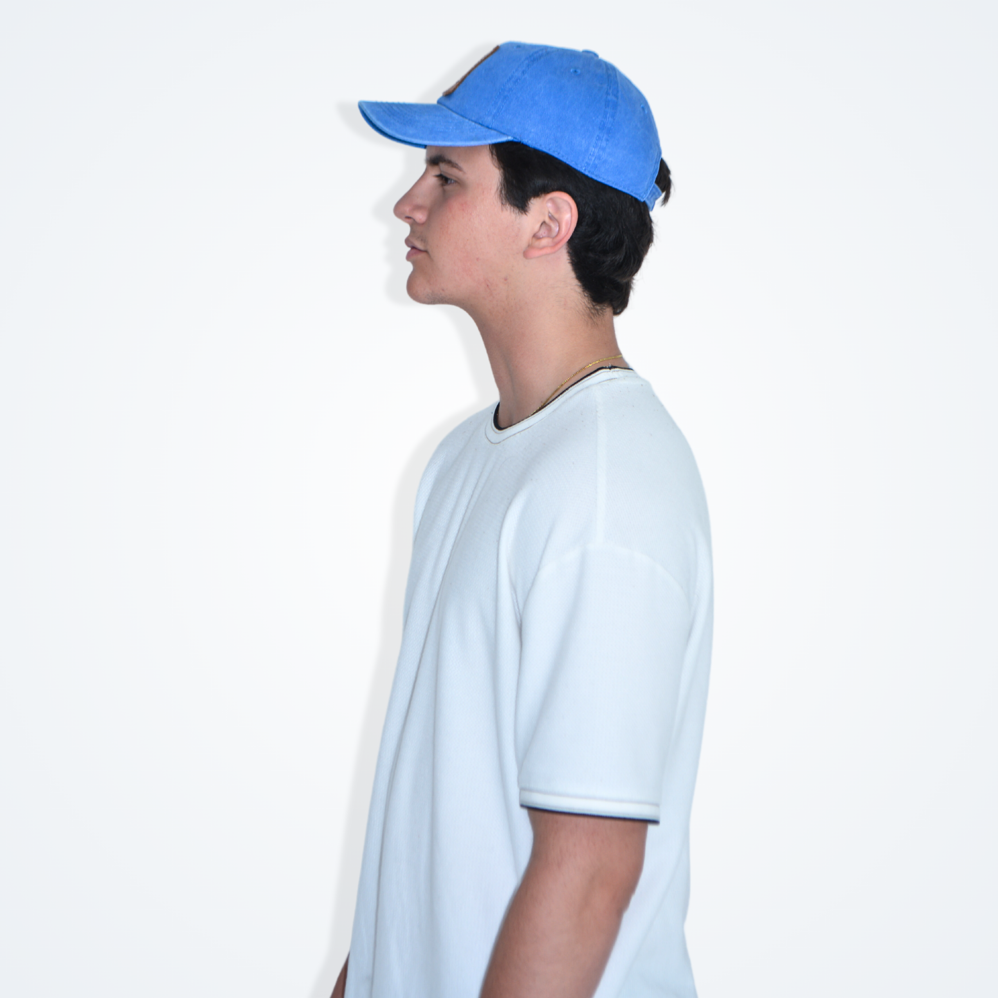 Gorra de algodon con parche de piel con cinta de velcro ajustable.
