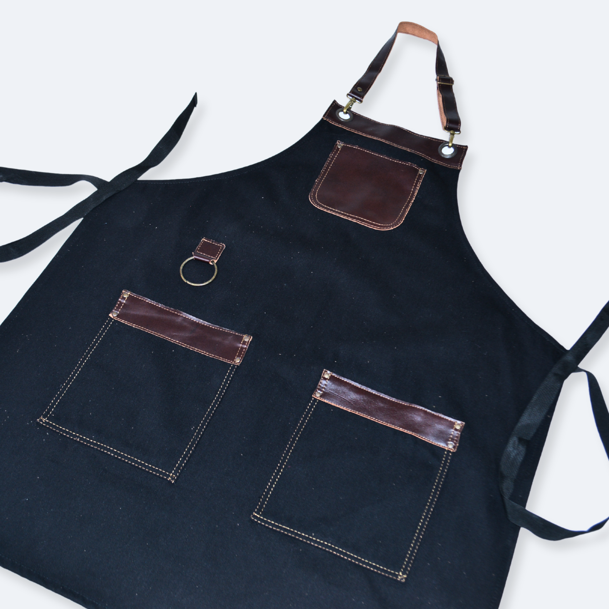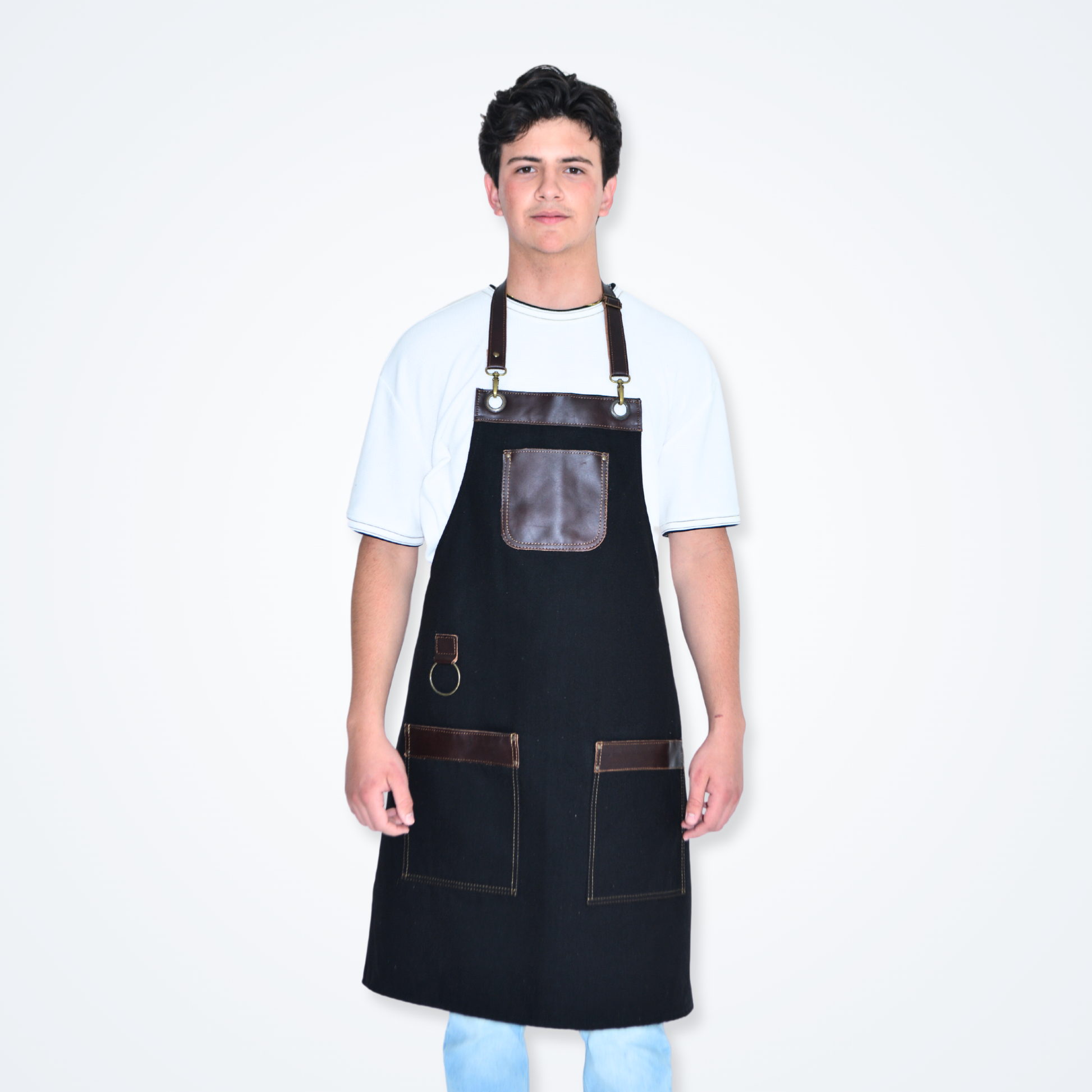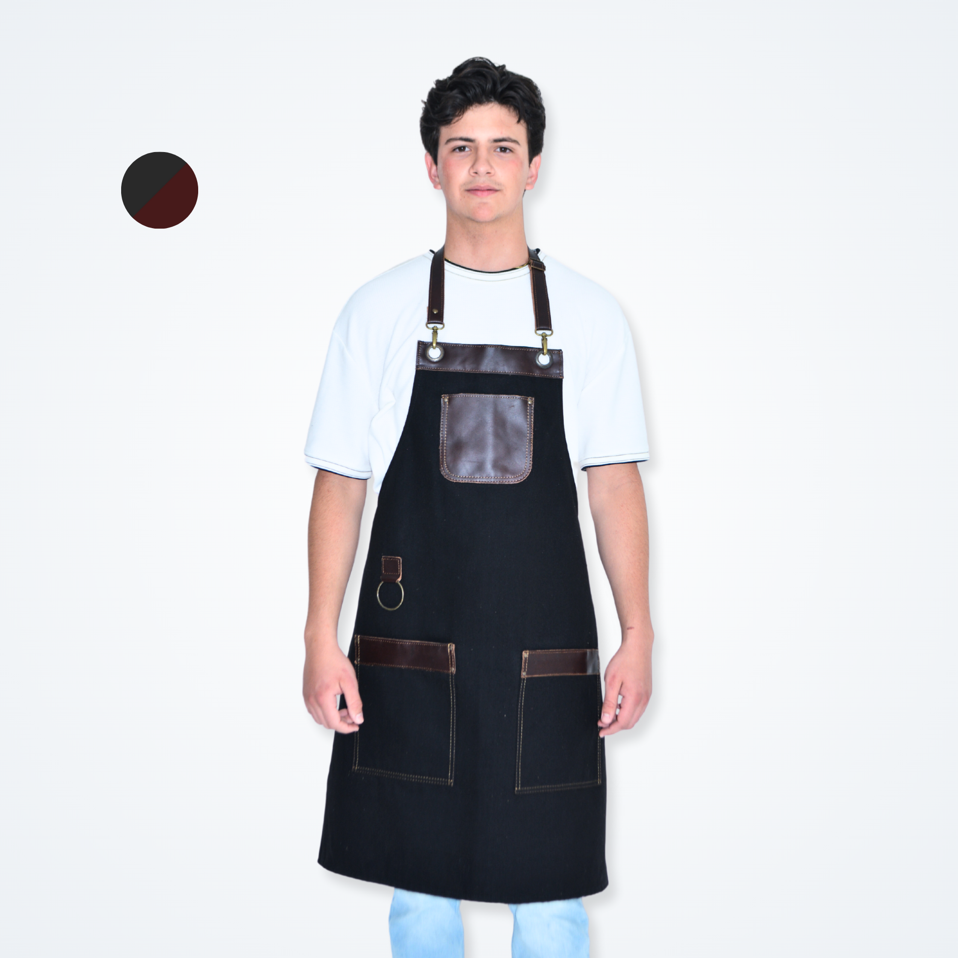 • Fabricado en tela de mezclilla gruesa 100% algodón con aplicaciones de piel , mantiene el mandil fresco durante su uso.