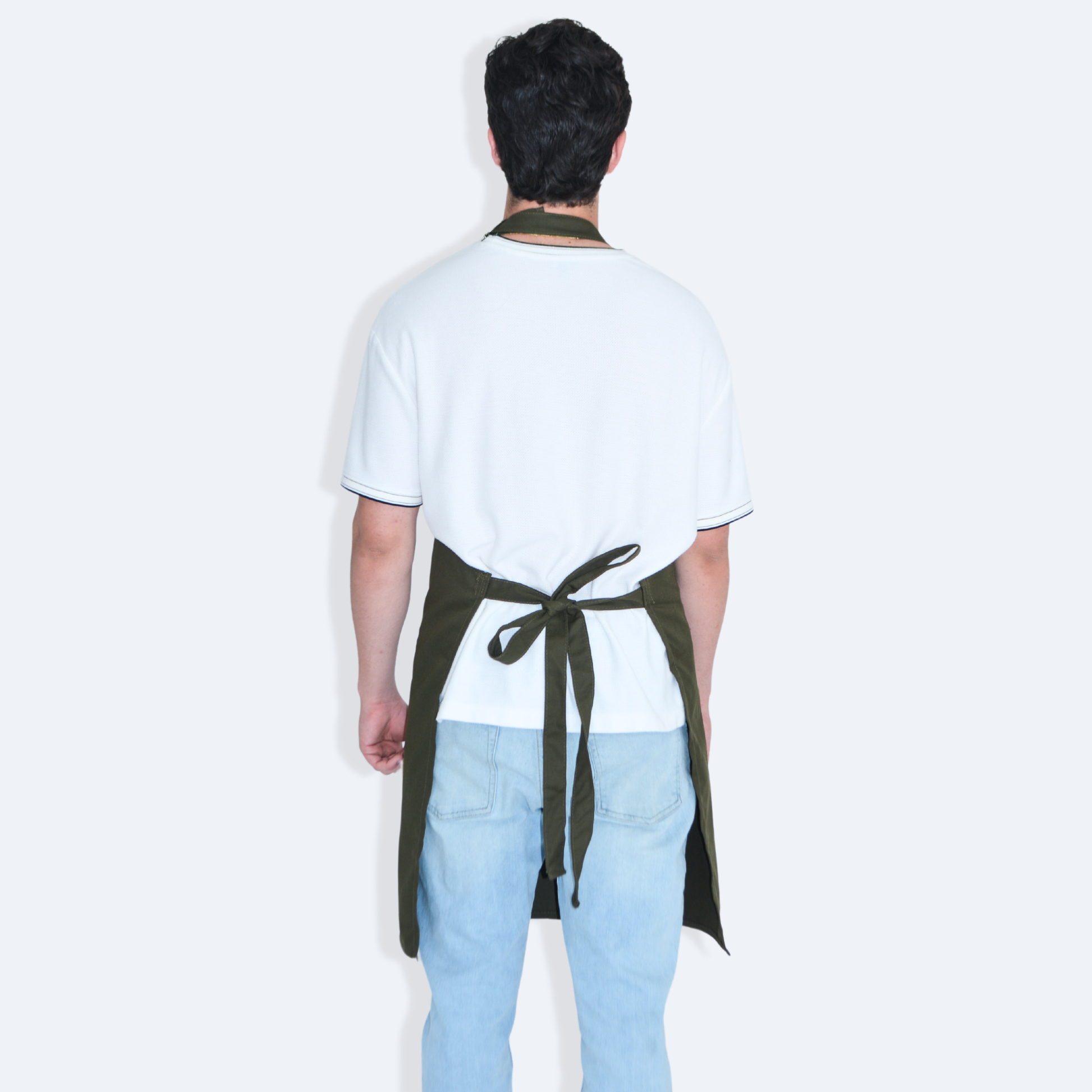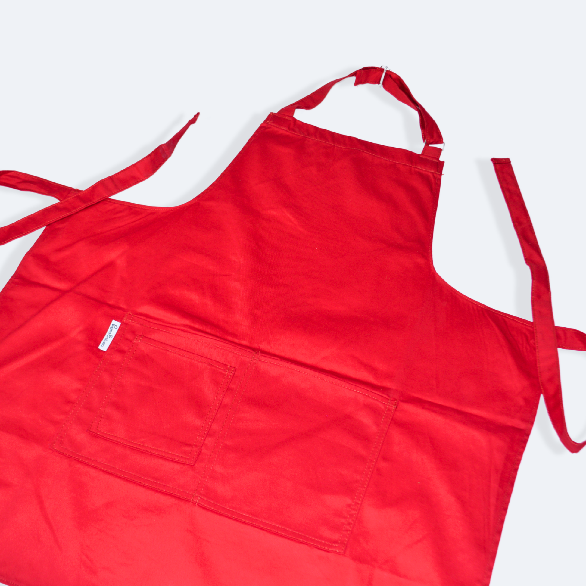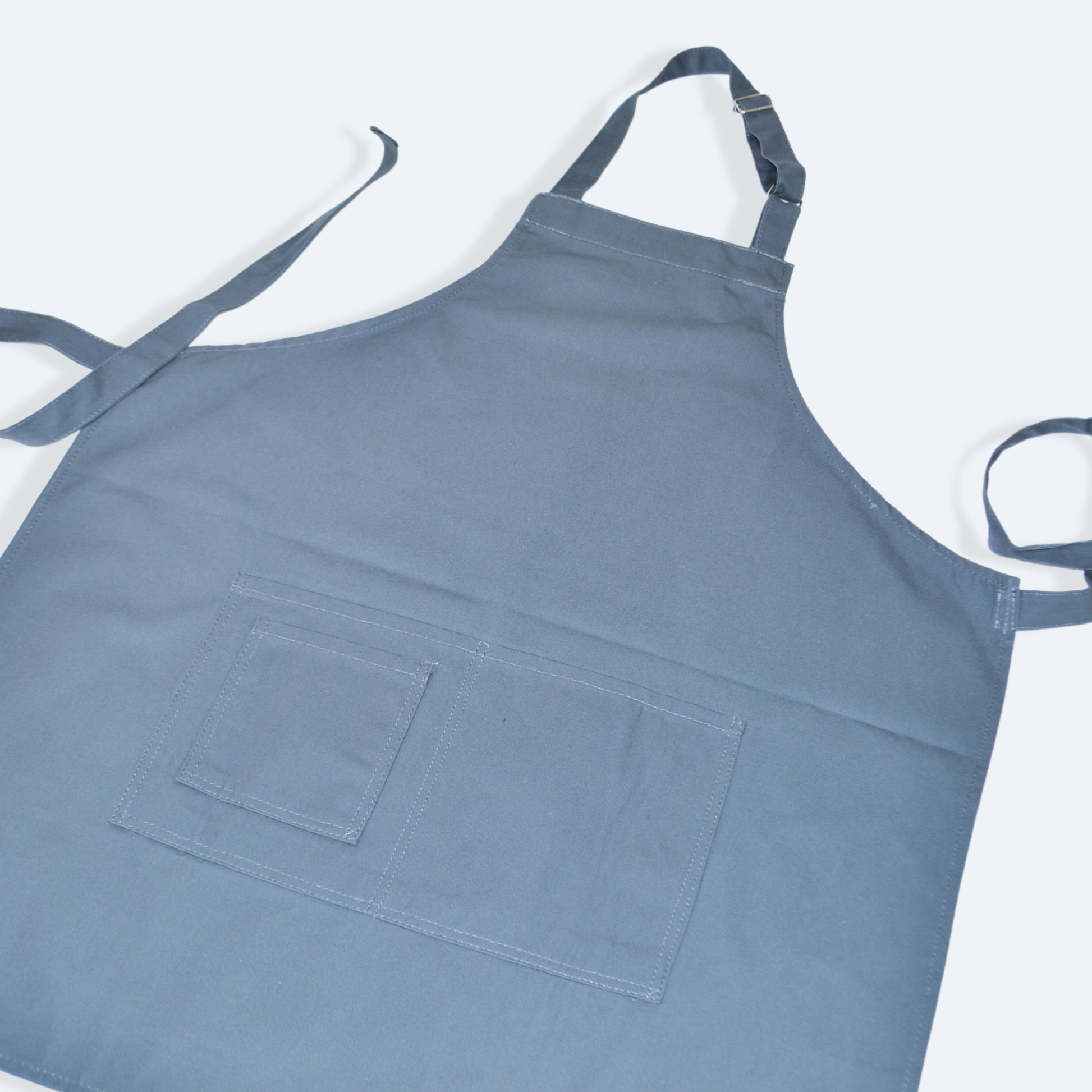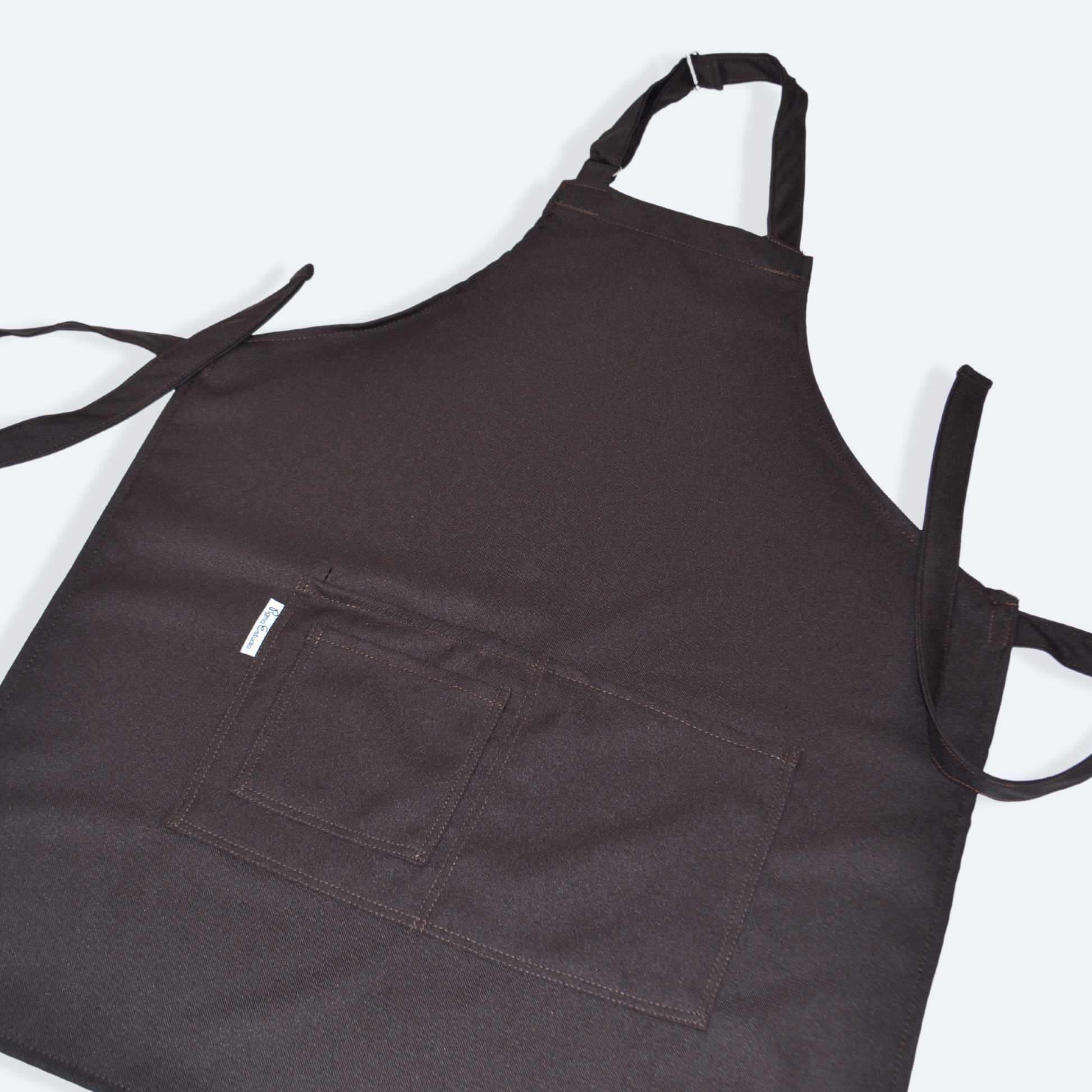 - Mandil completo, tres bolsas al frente y cintas ajustables y amarre de espalda normal.