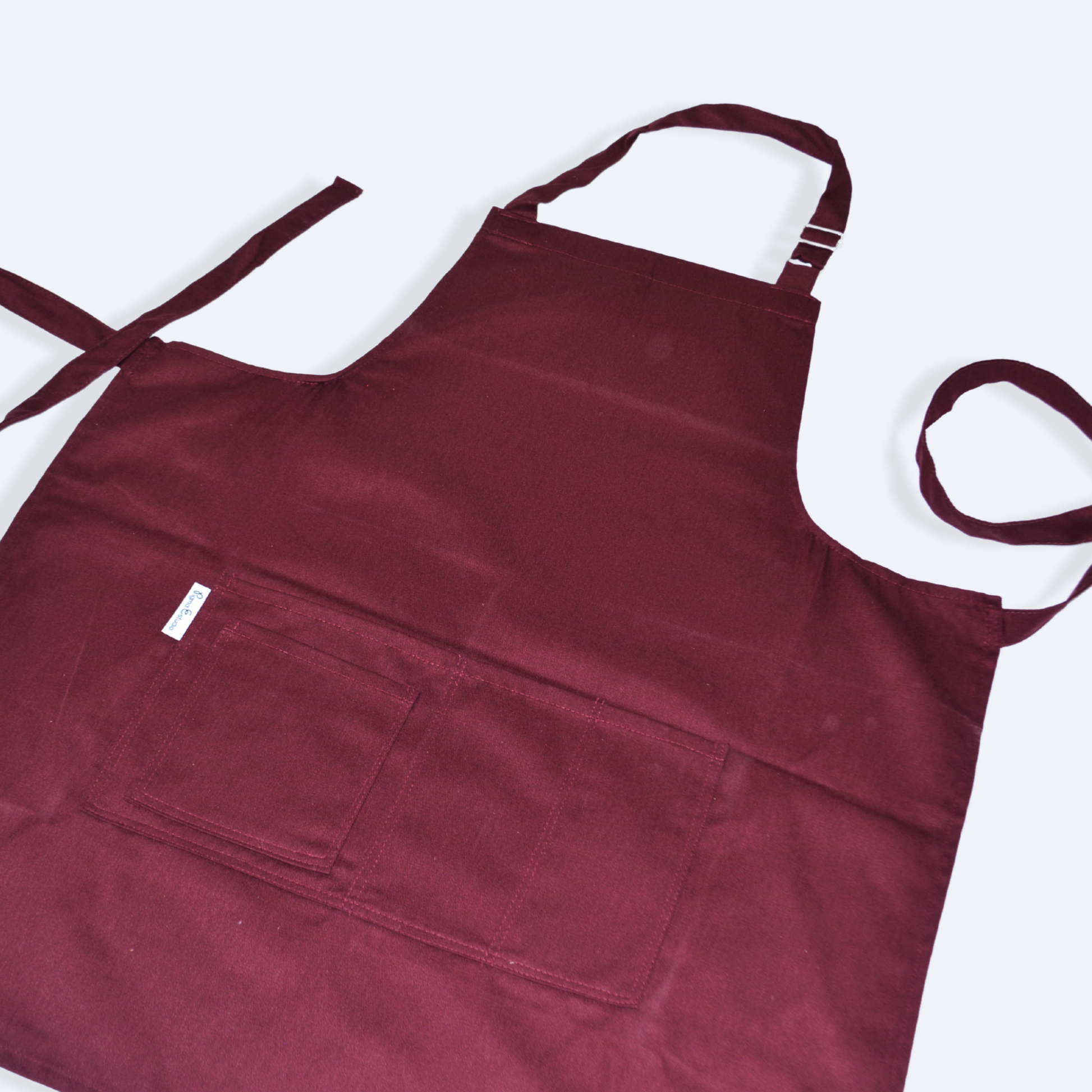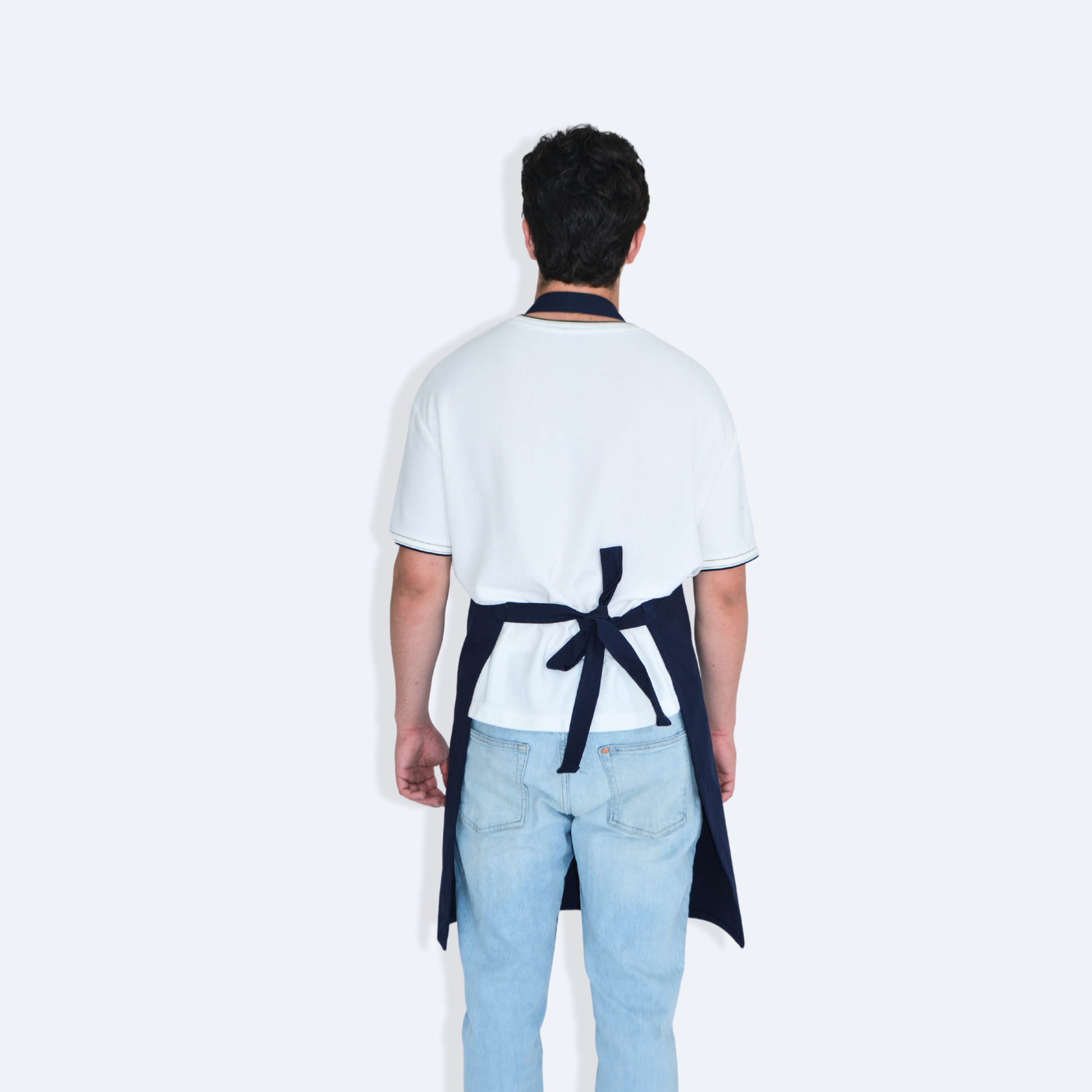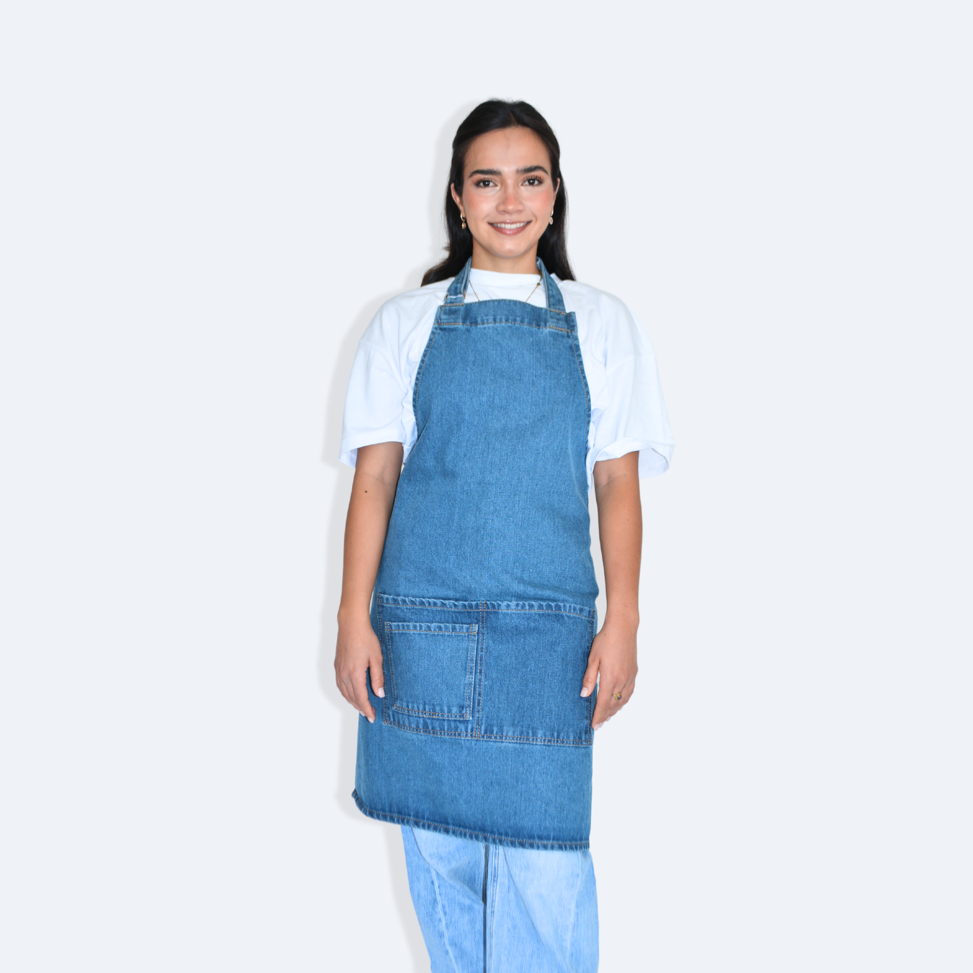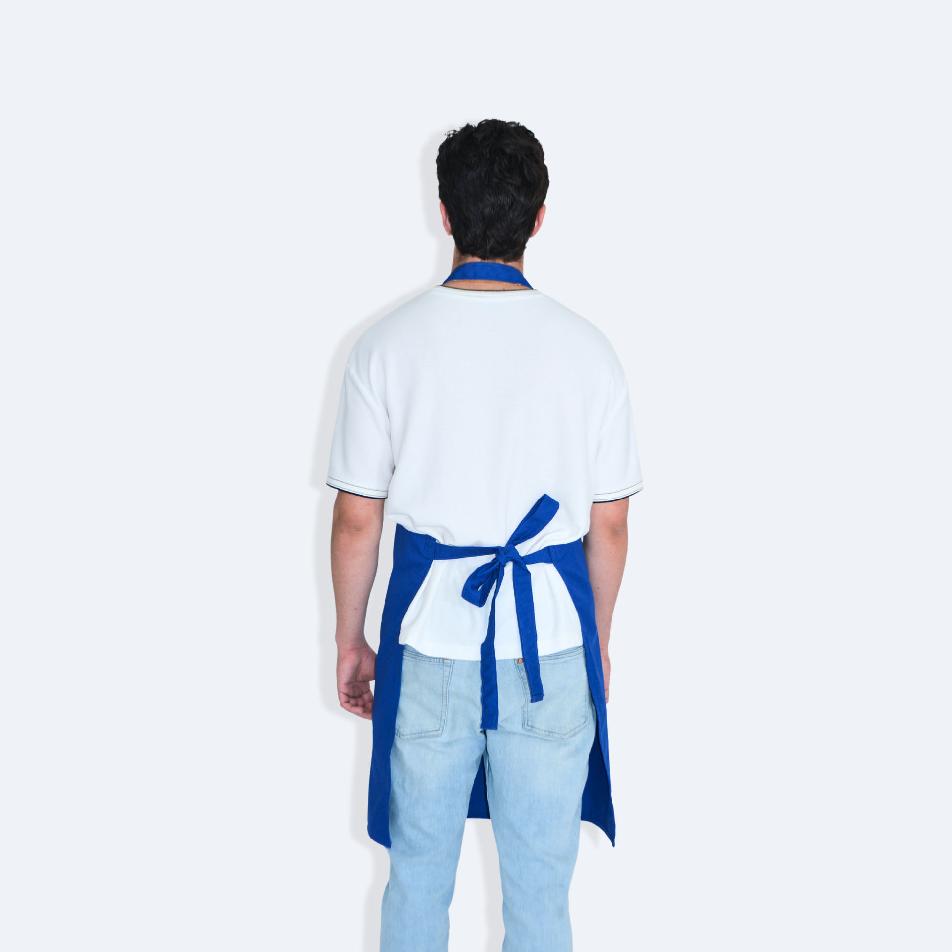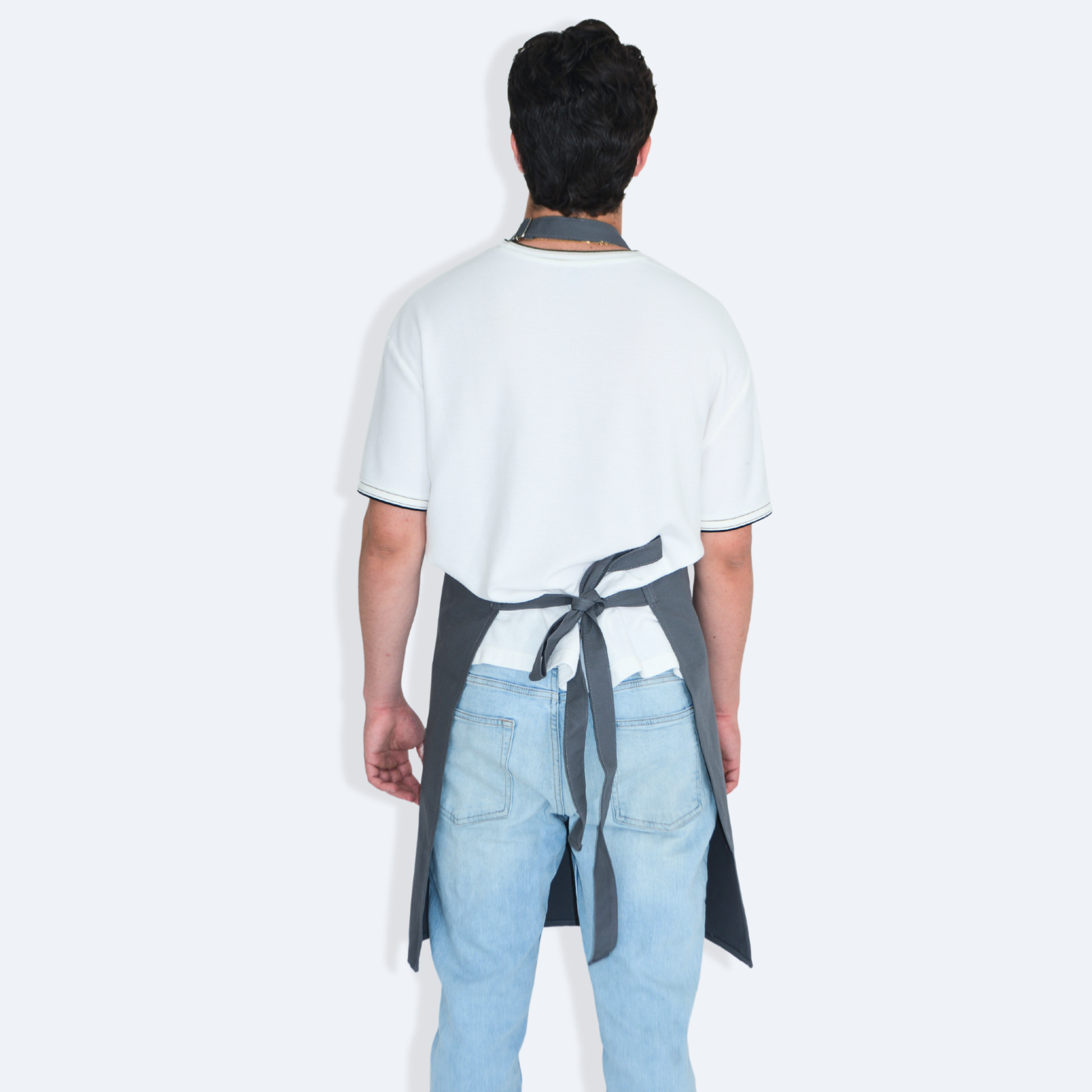 - Mandil completo, tres bolsas al frente y cintas ajustables y amarre de espalda normal.