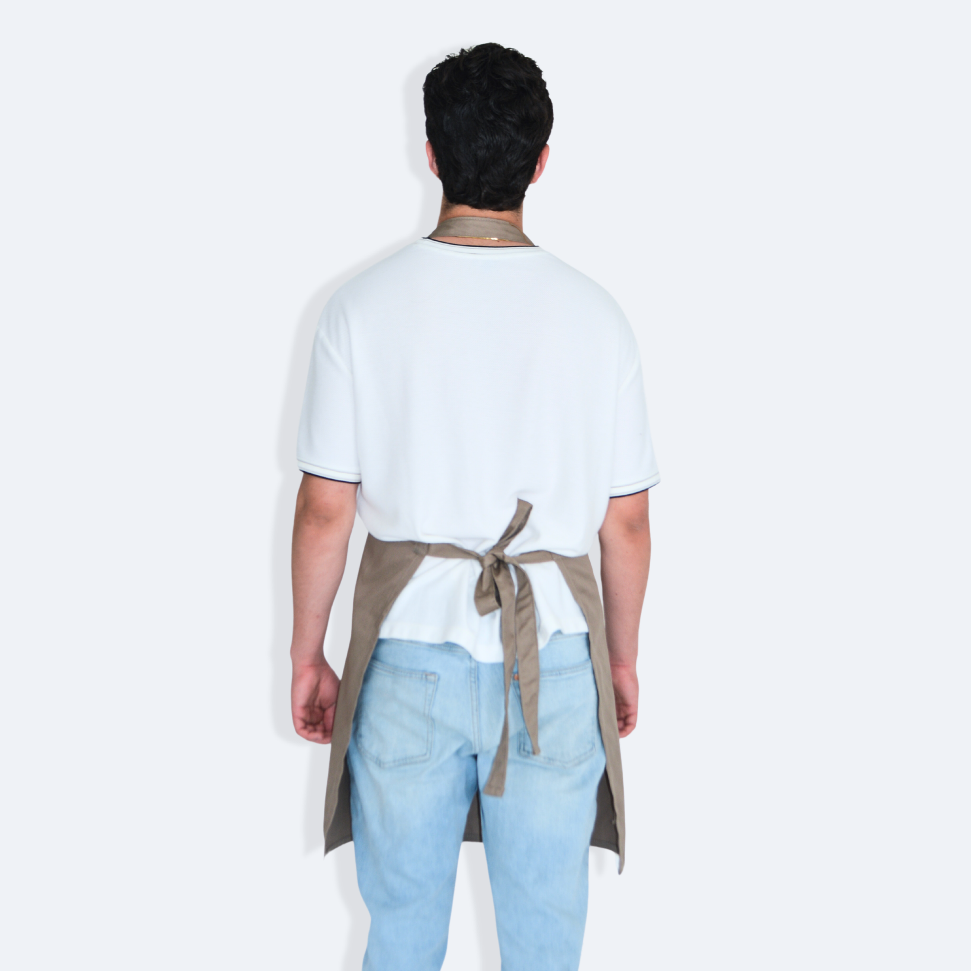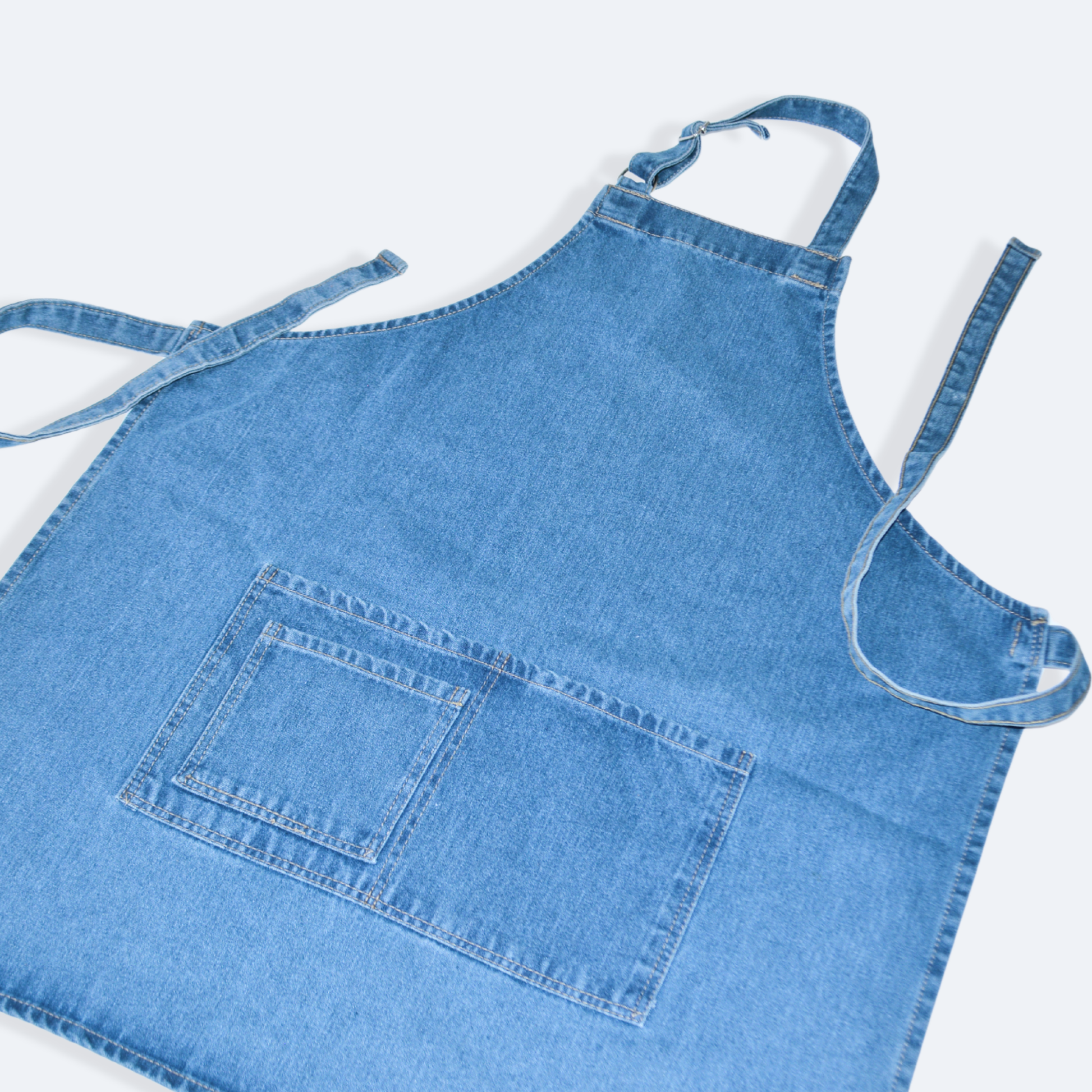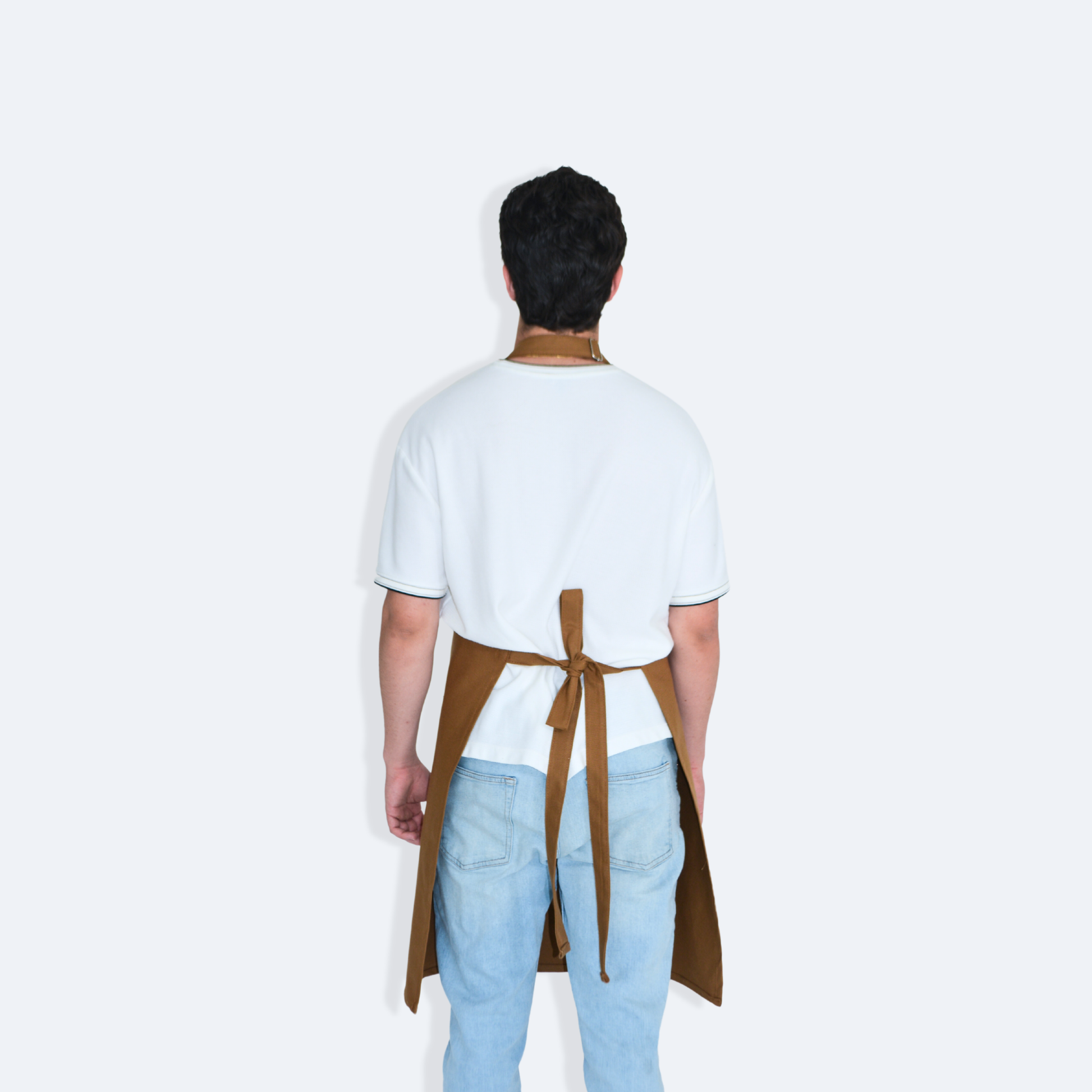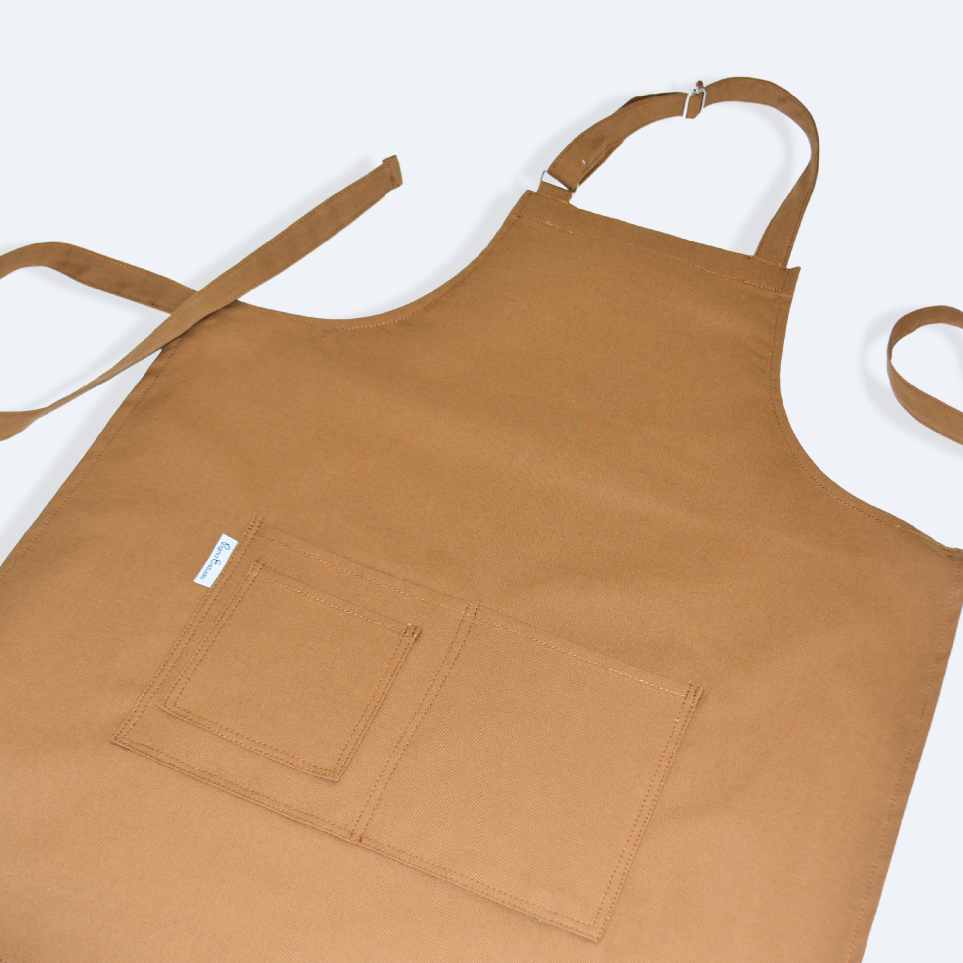 - Mandil completo, tres bolsas al frente y cintas ajustables y amarre de espalda normal.