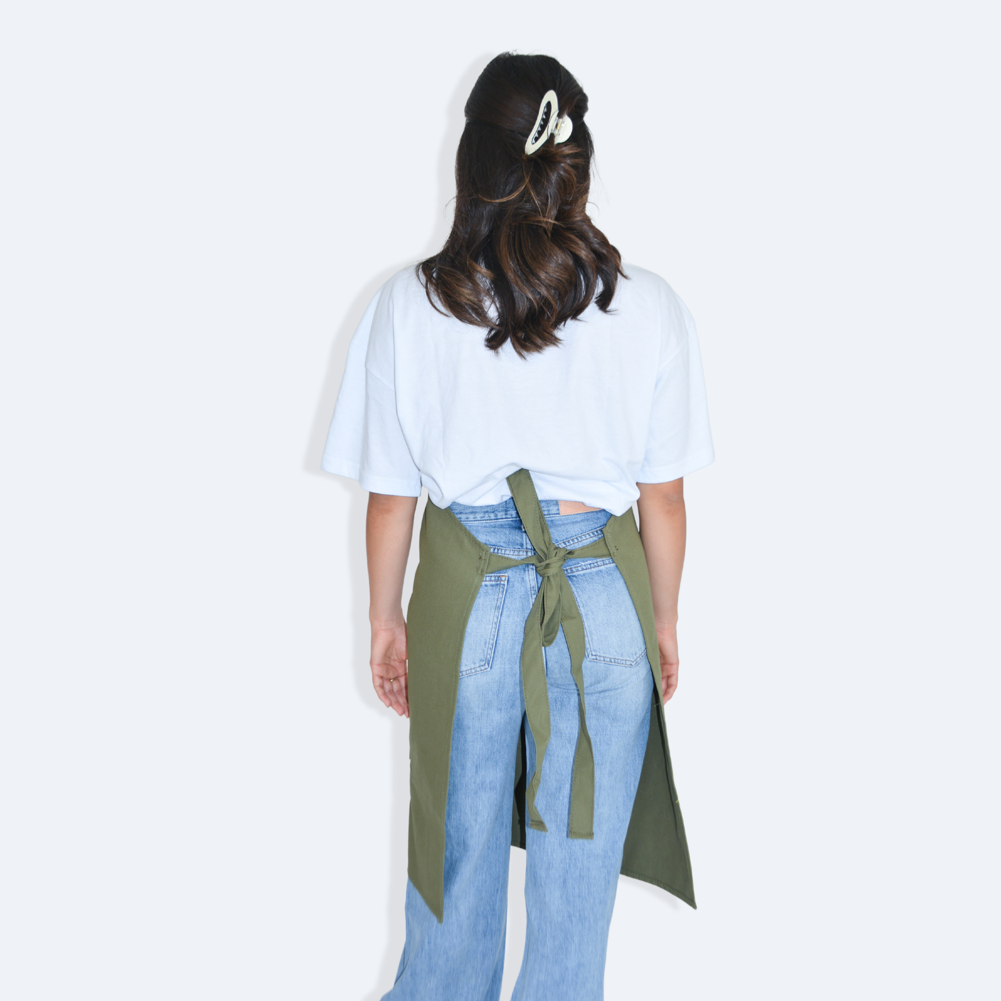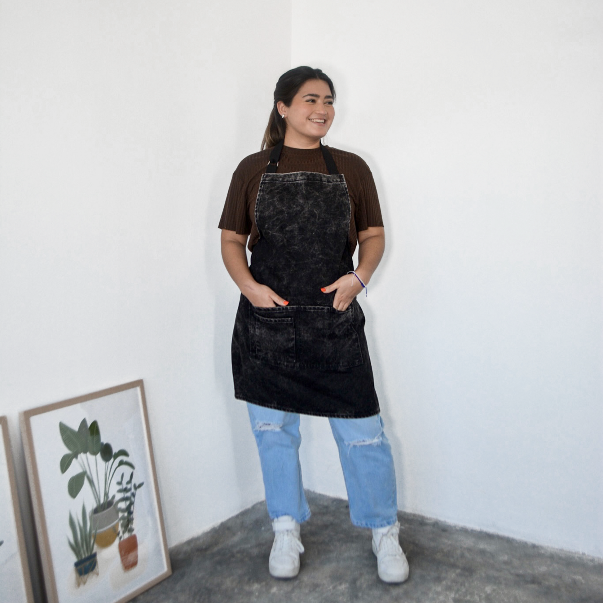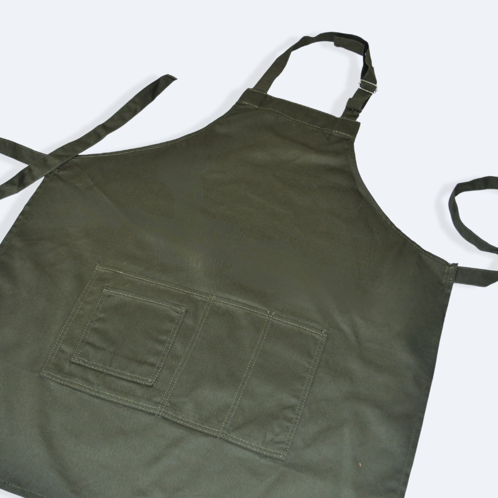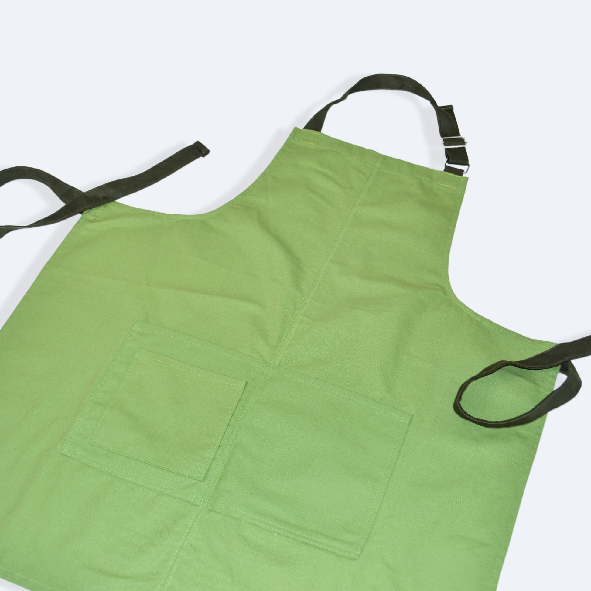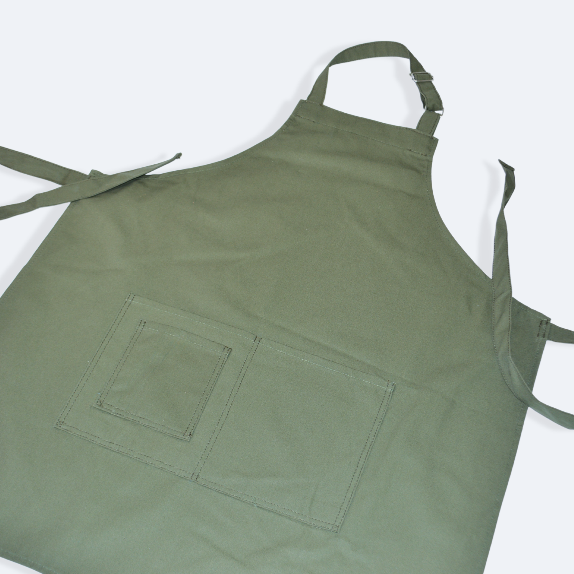 - Mandil completo, tres bolsas al frente y cintas ajustables y amarre de espalda normal.