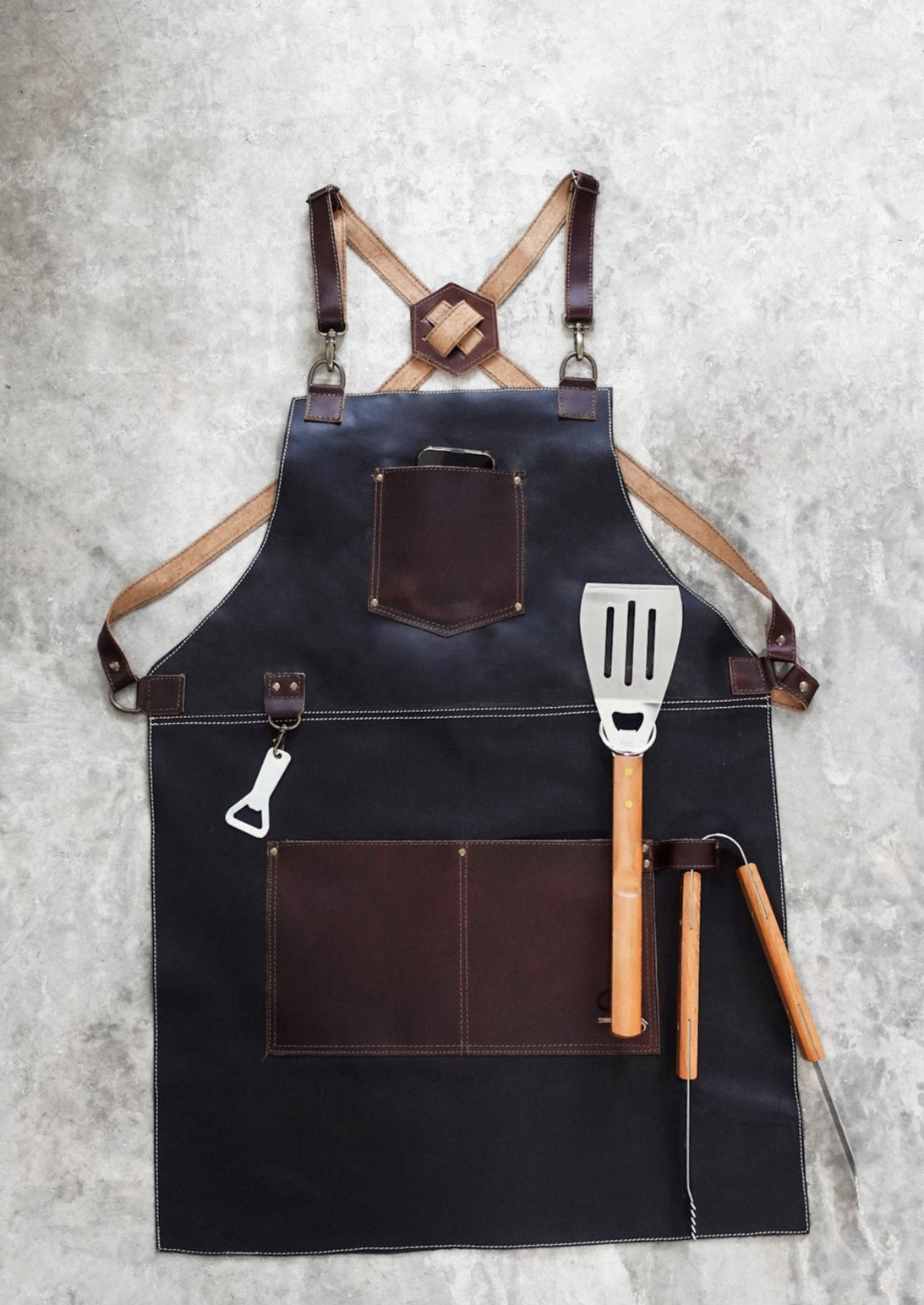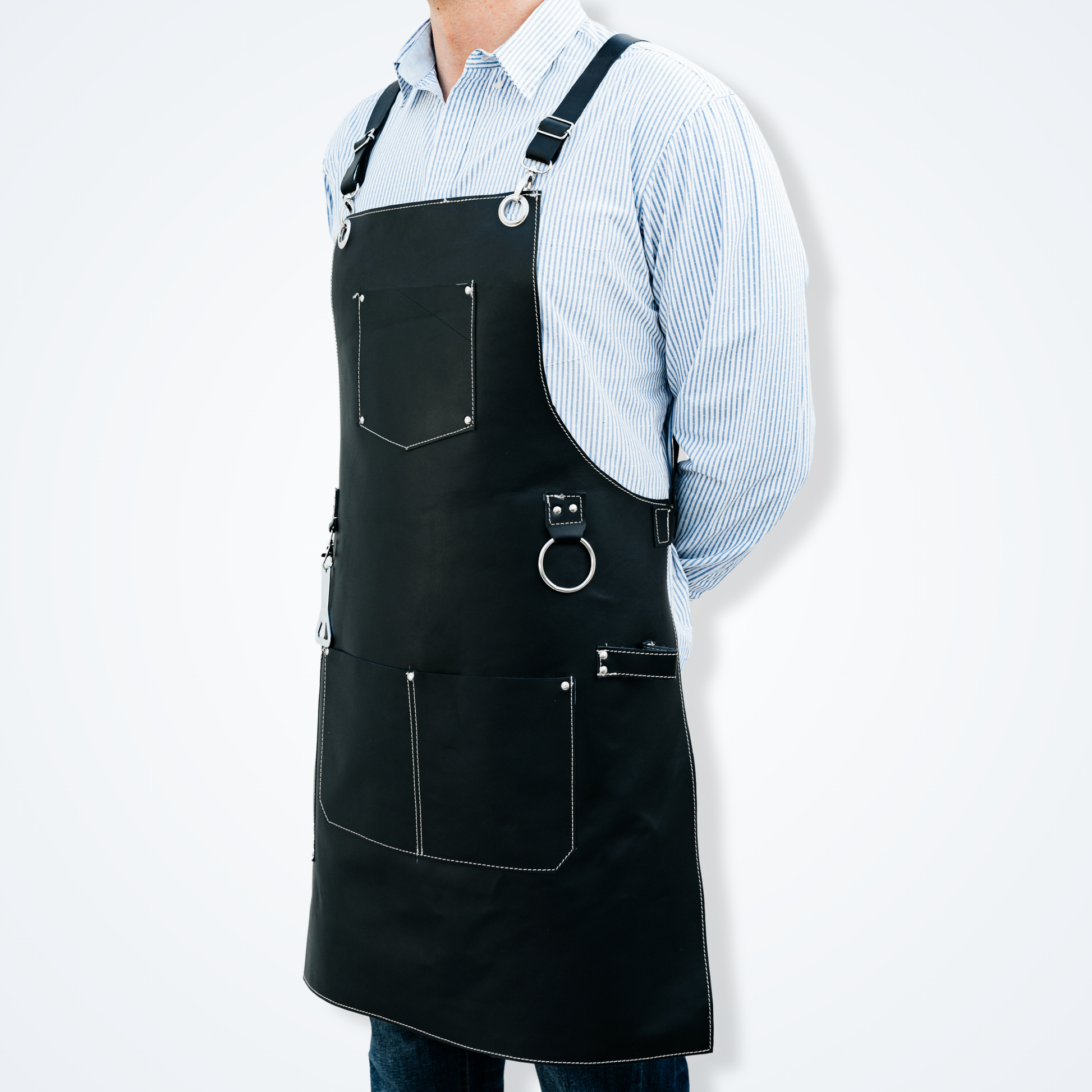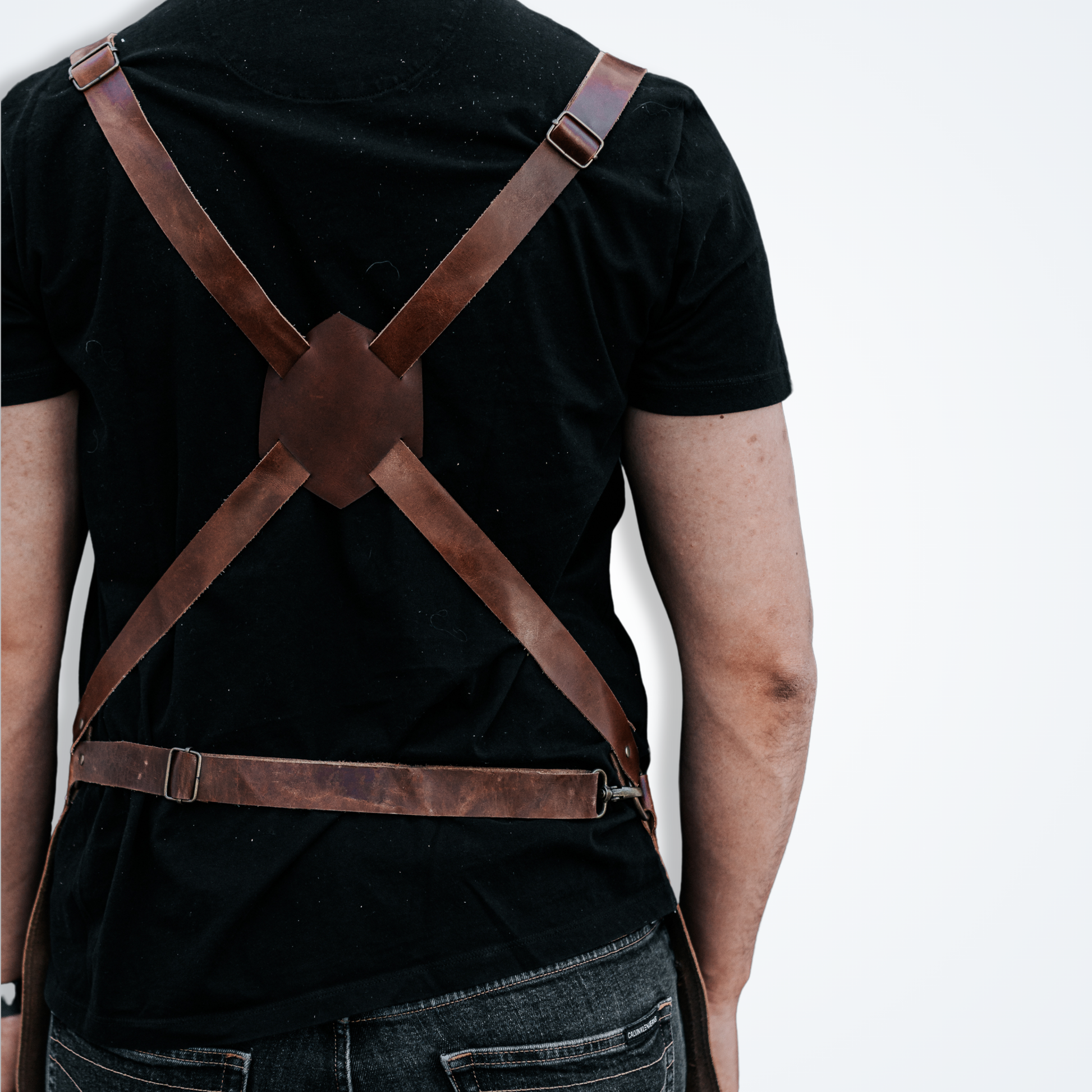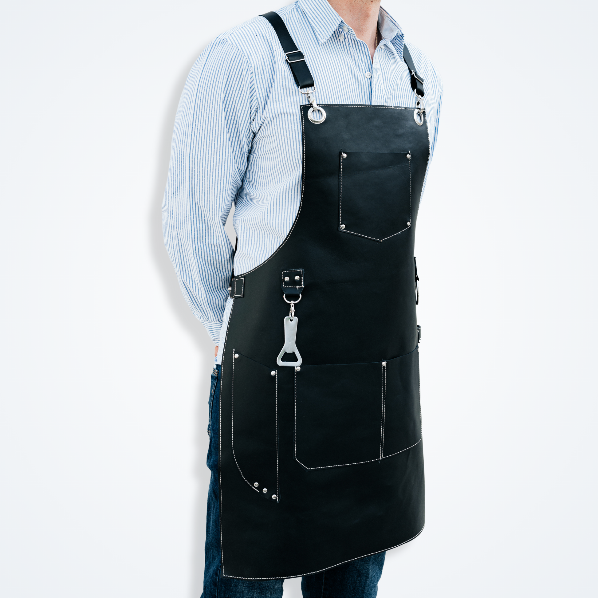 Mandil Unisex. Fabricado completamente de piel genuina 100%. maxima proteccion te protege del fuego y agua. Cuenta con 3 bolsas grandes, 2 compartimentos para colgar tus herramientas, un porta cuchillo, un destapador, una argolla y cintas de la espalda ajustables y cruzadas para mayor comodidad y distribucion del peso.