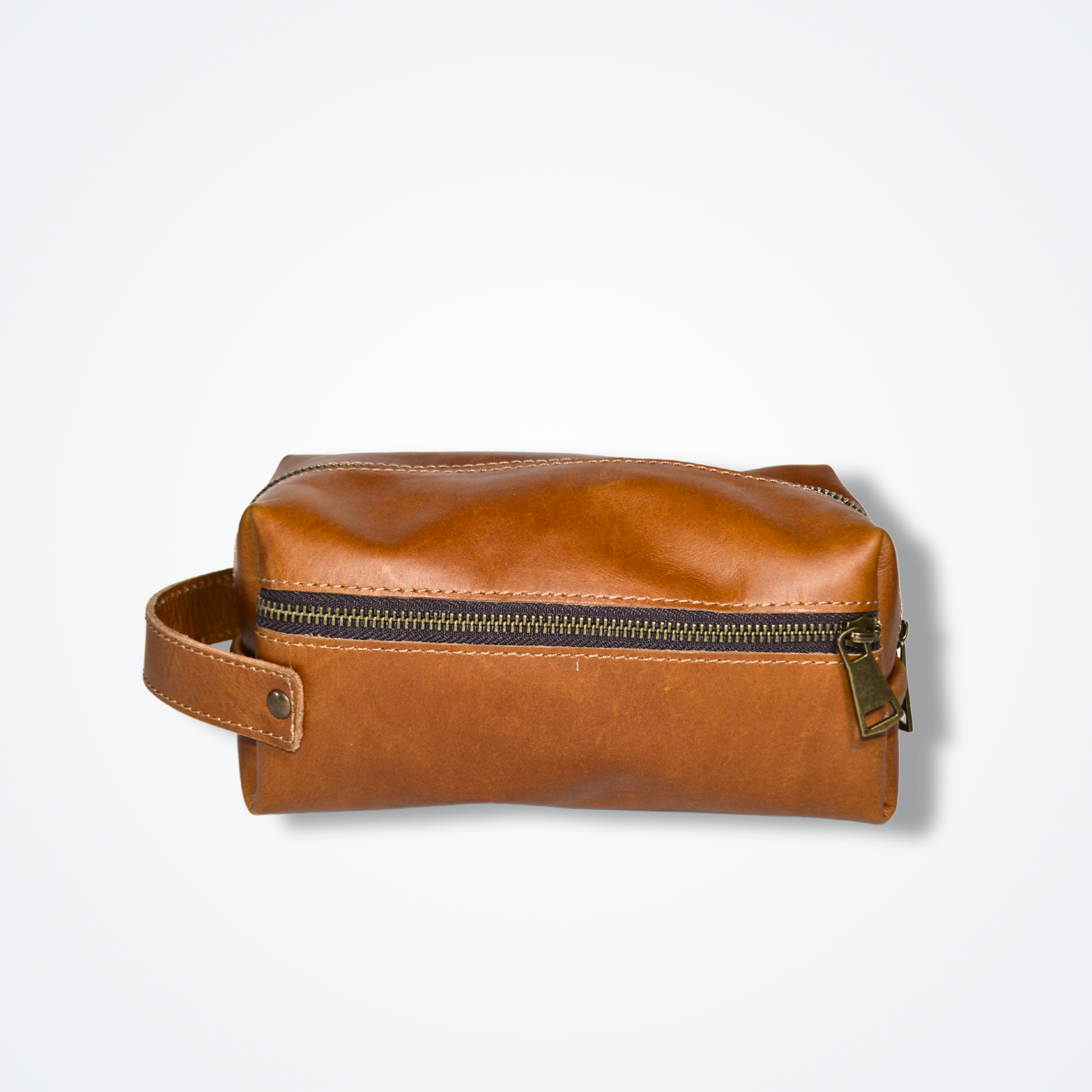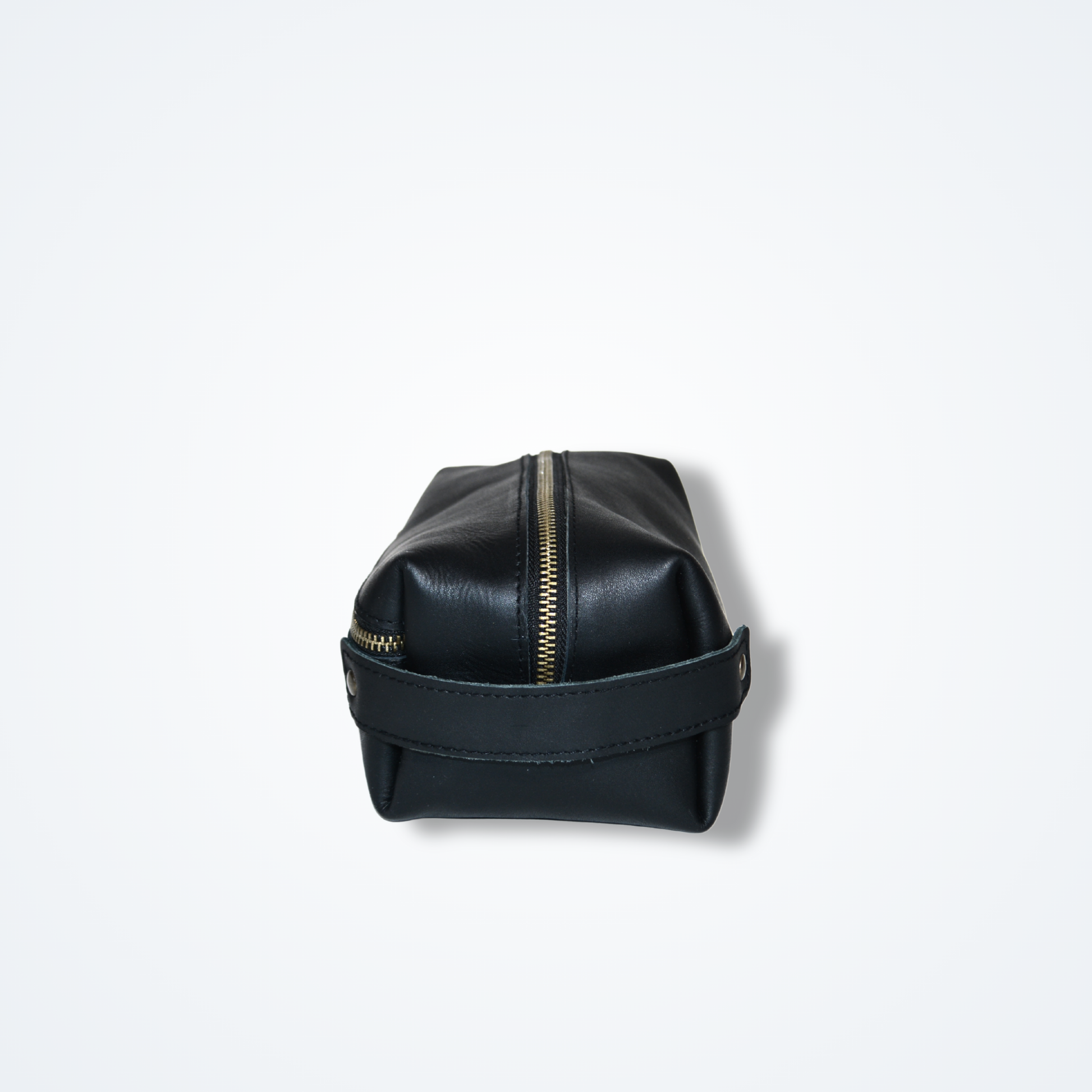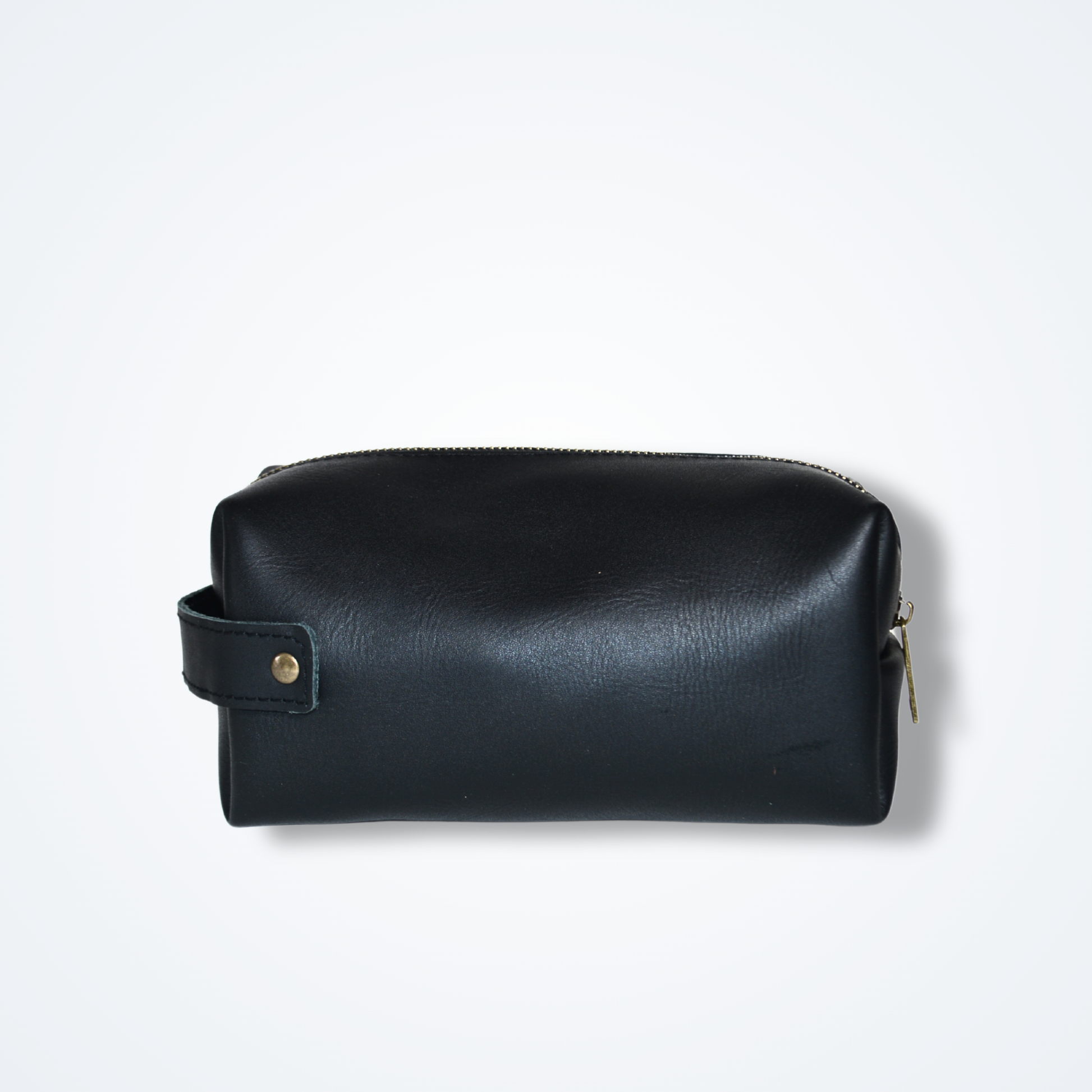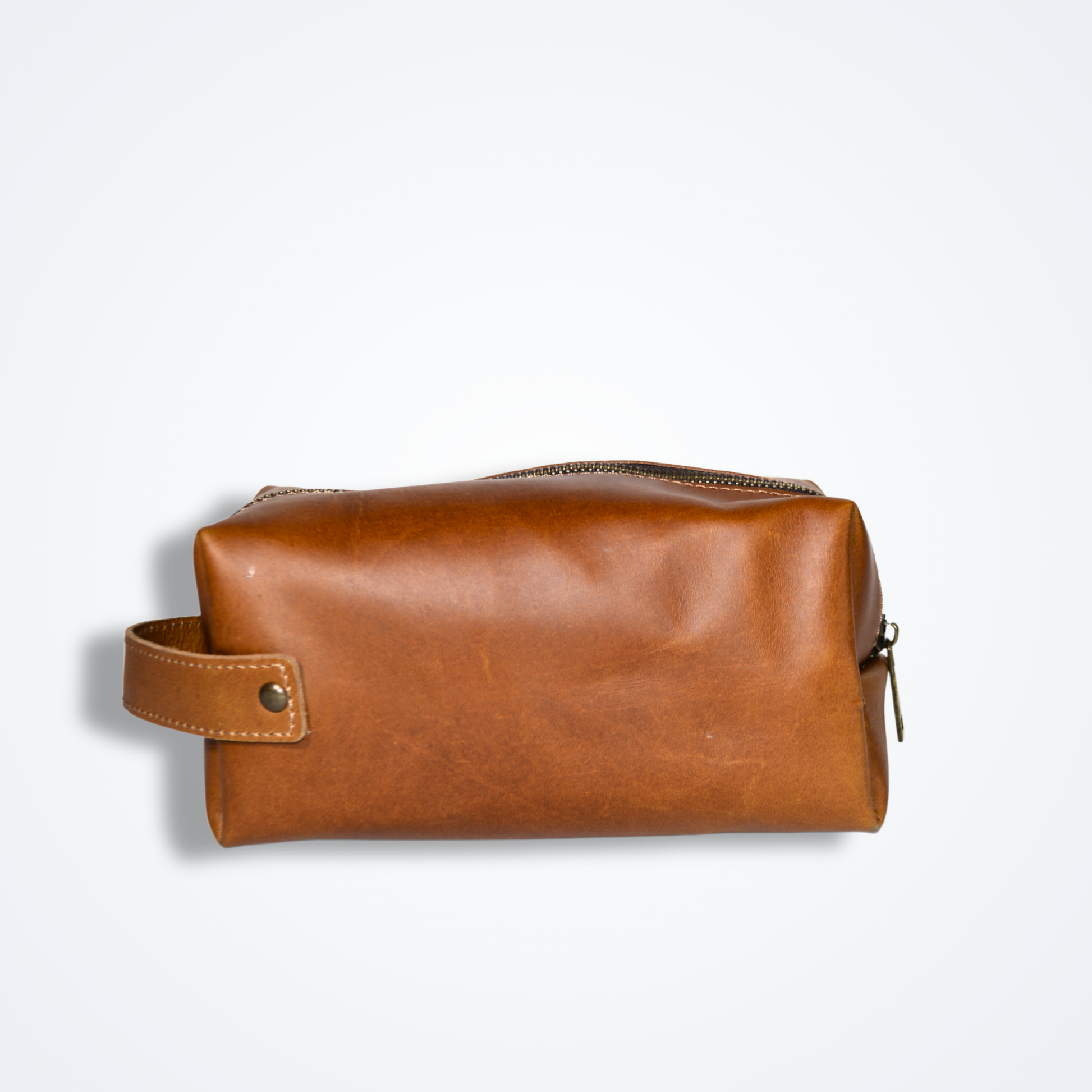 bolsa neceser fabricada en piel de alta calidad. Dispone de un compartimento principal con cierre de zipper, con asa de mano lateral para facilitar su transporte.