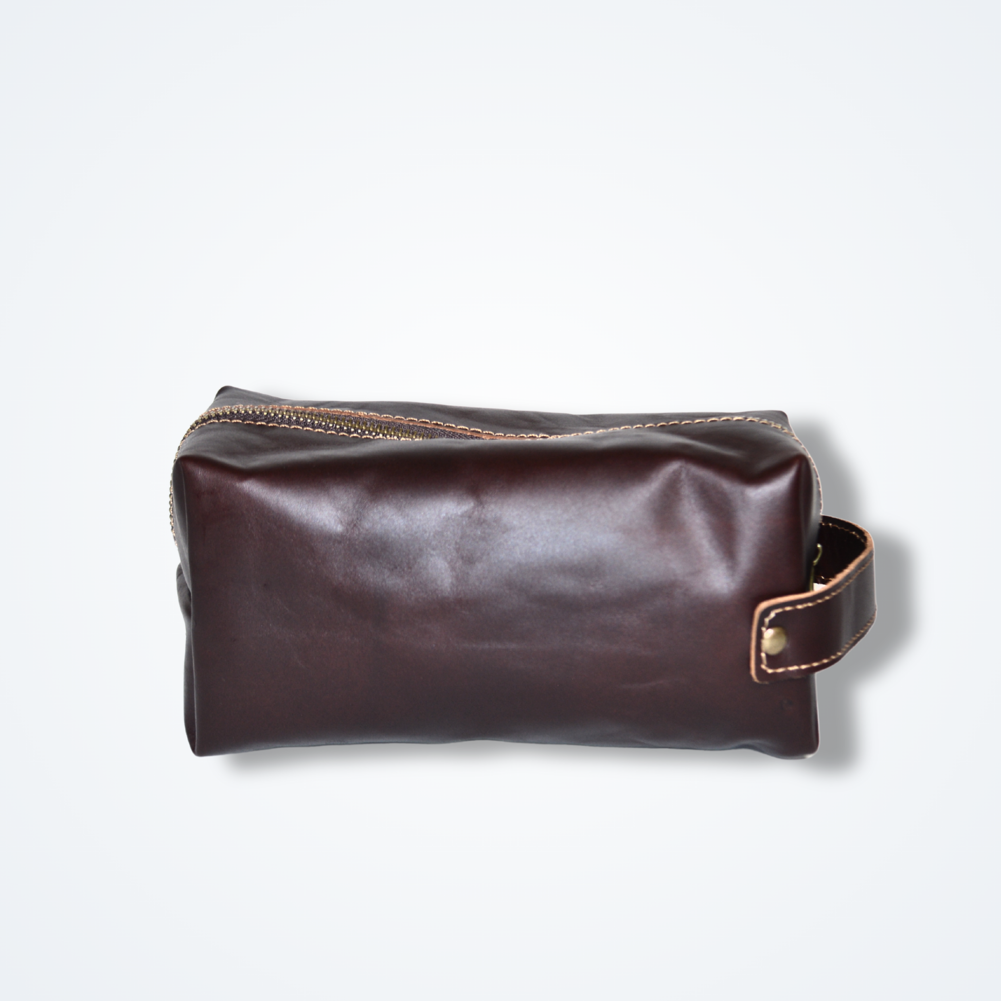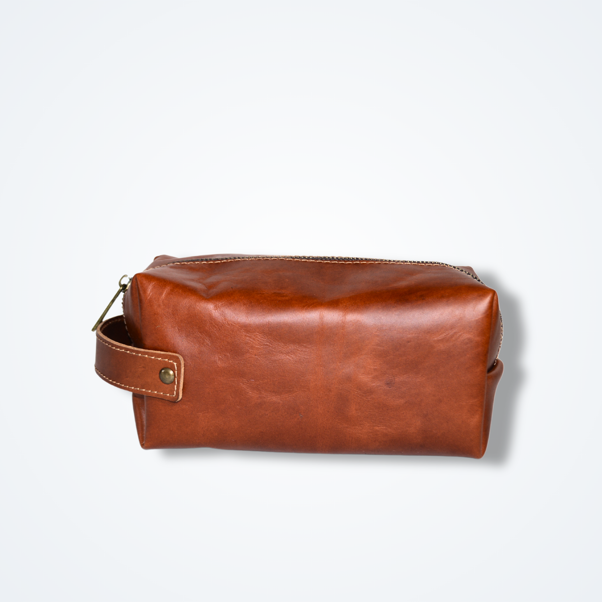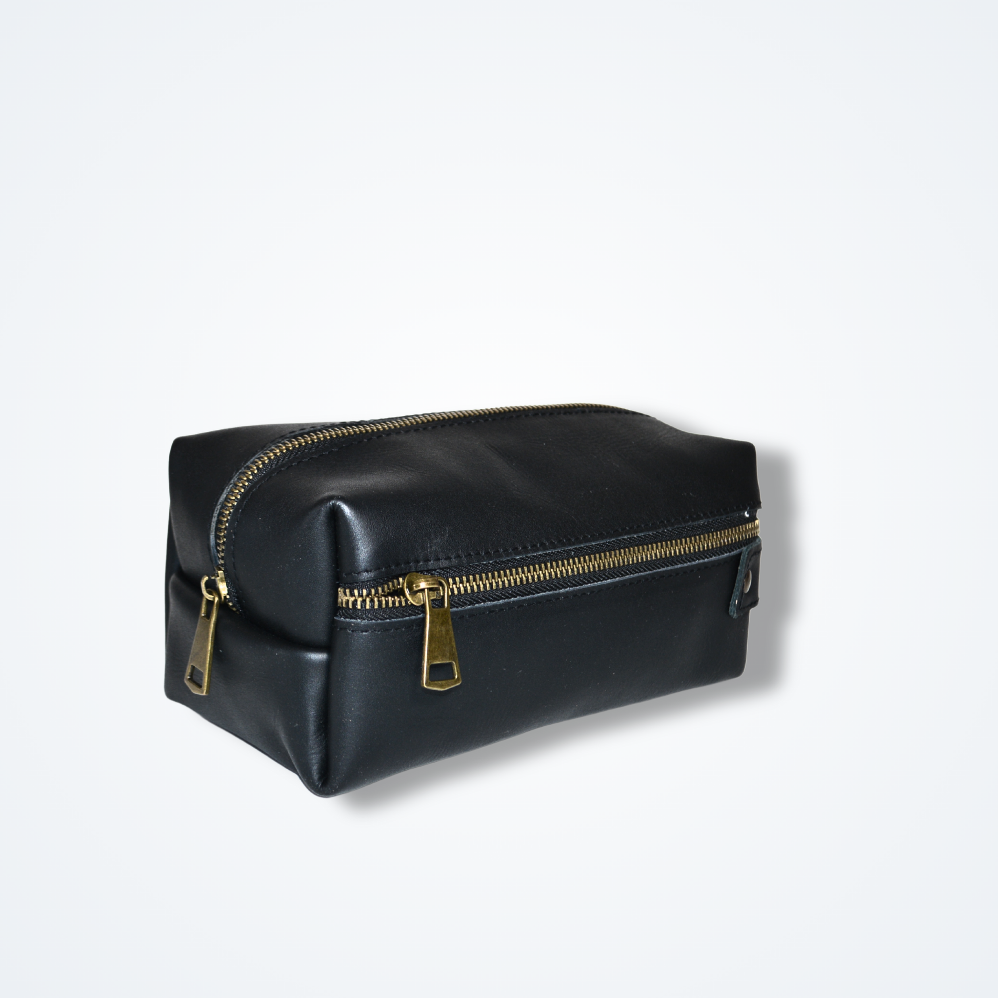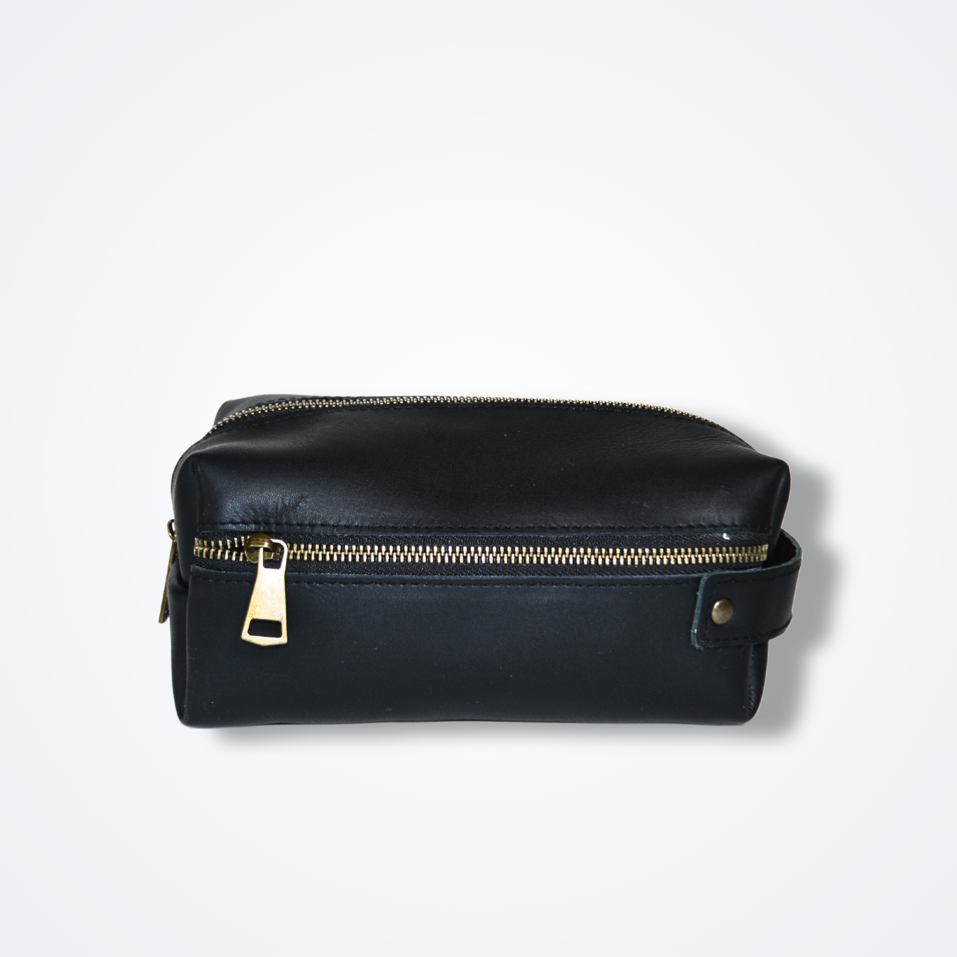 bolsa neceser fabricada en piel de alta calidad. Dispone de un compartimento principal con cierre de zipper, con asa de mano lateral para facilitar su transporte.