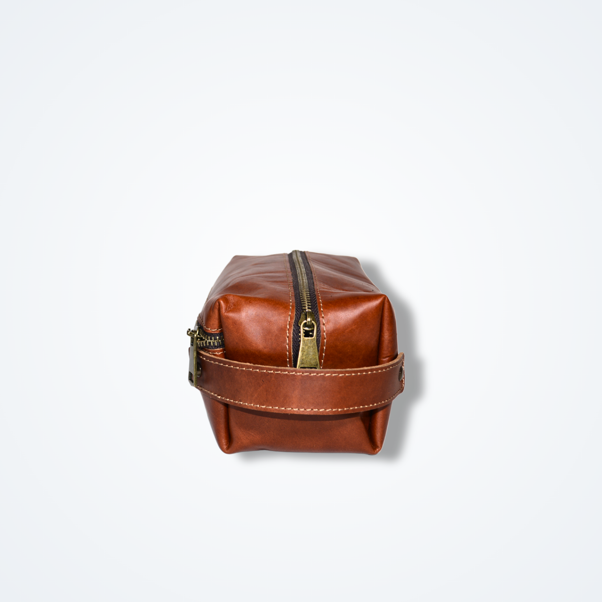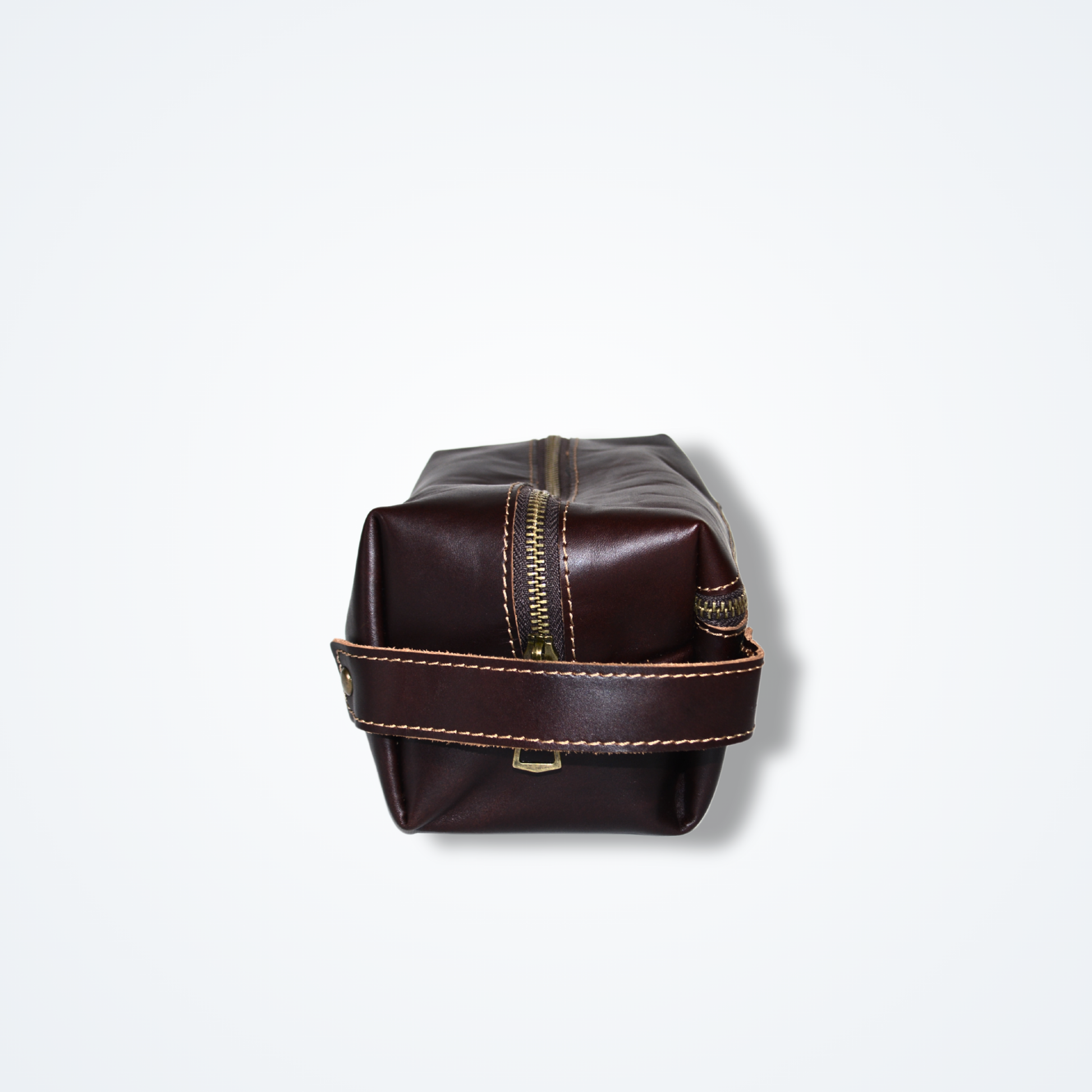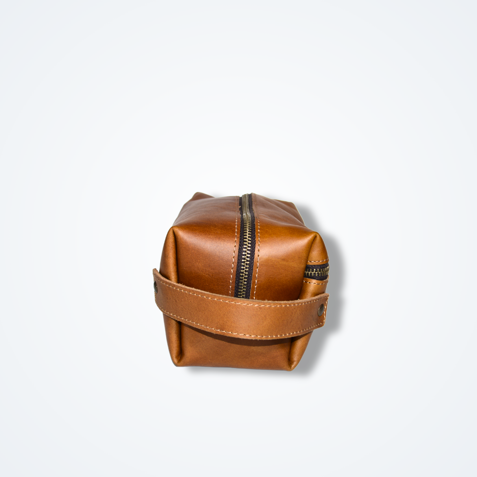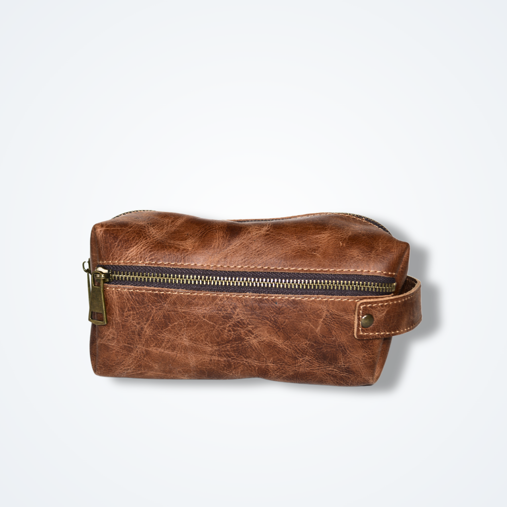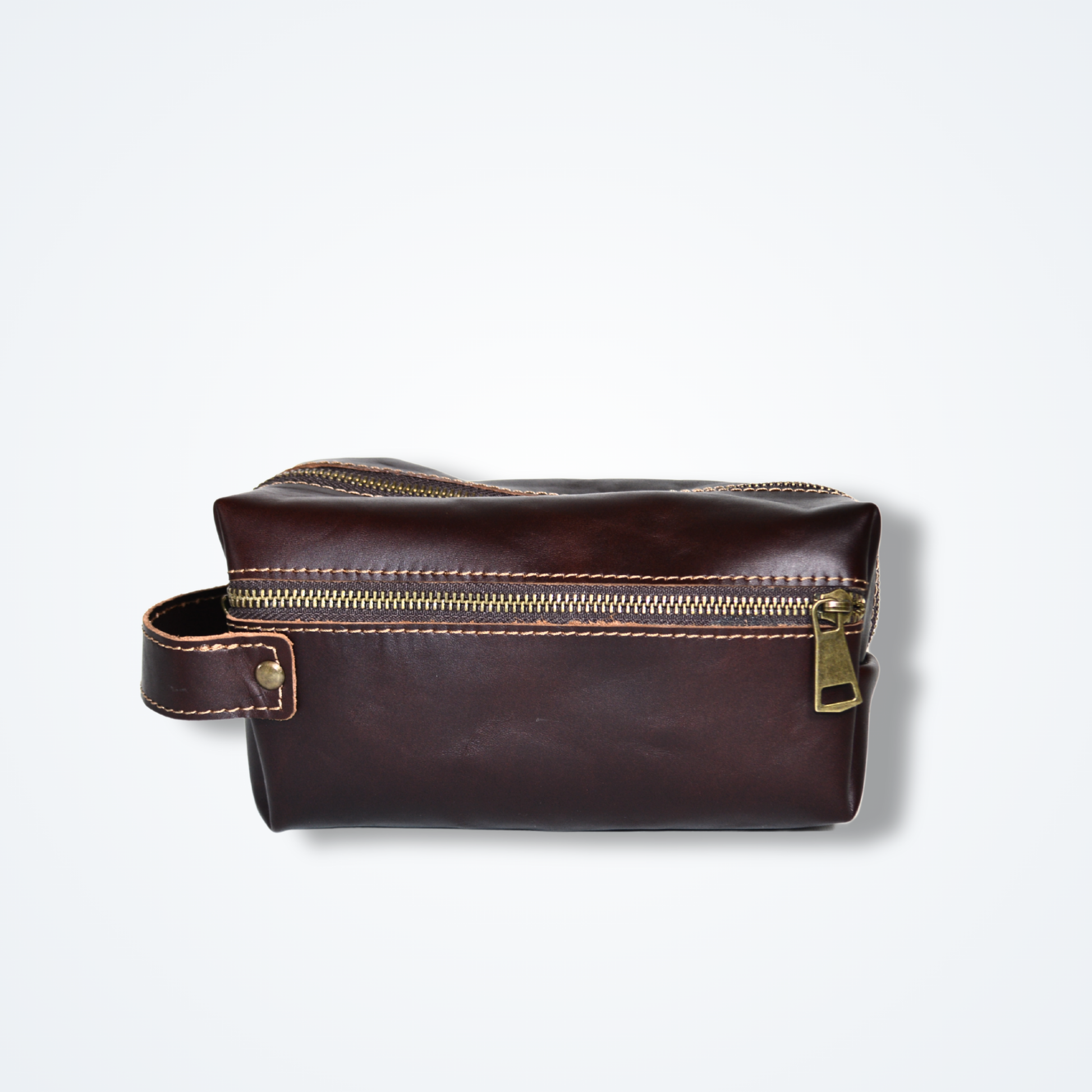 bolsa neceser fabricada en piel de alta calidad. Dispone de un compartimento principal con cierre de zipper, con asa de mano lateral para facilitar su transporte.