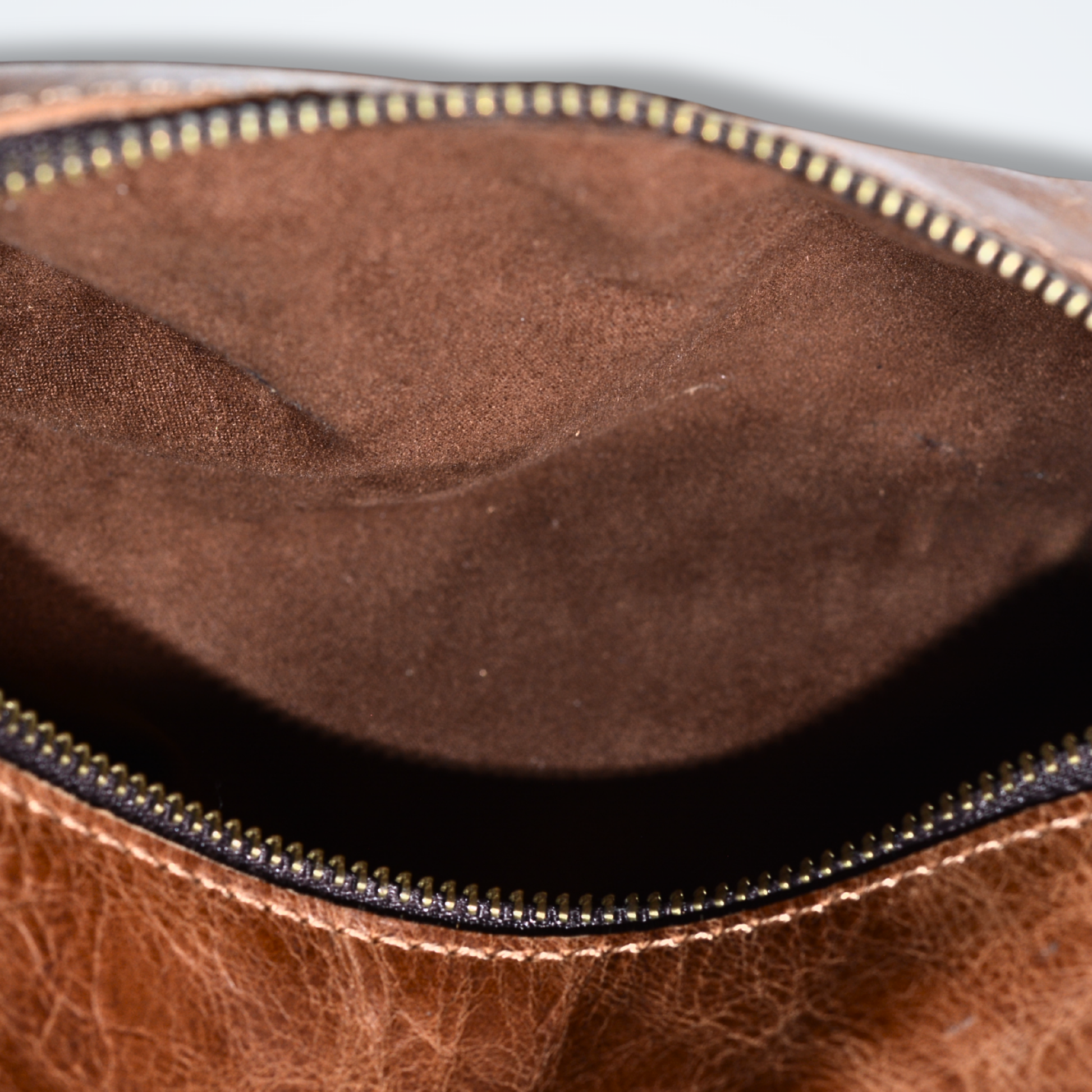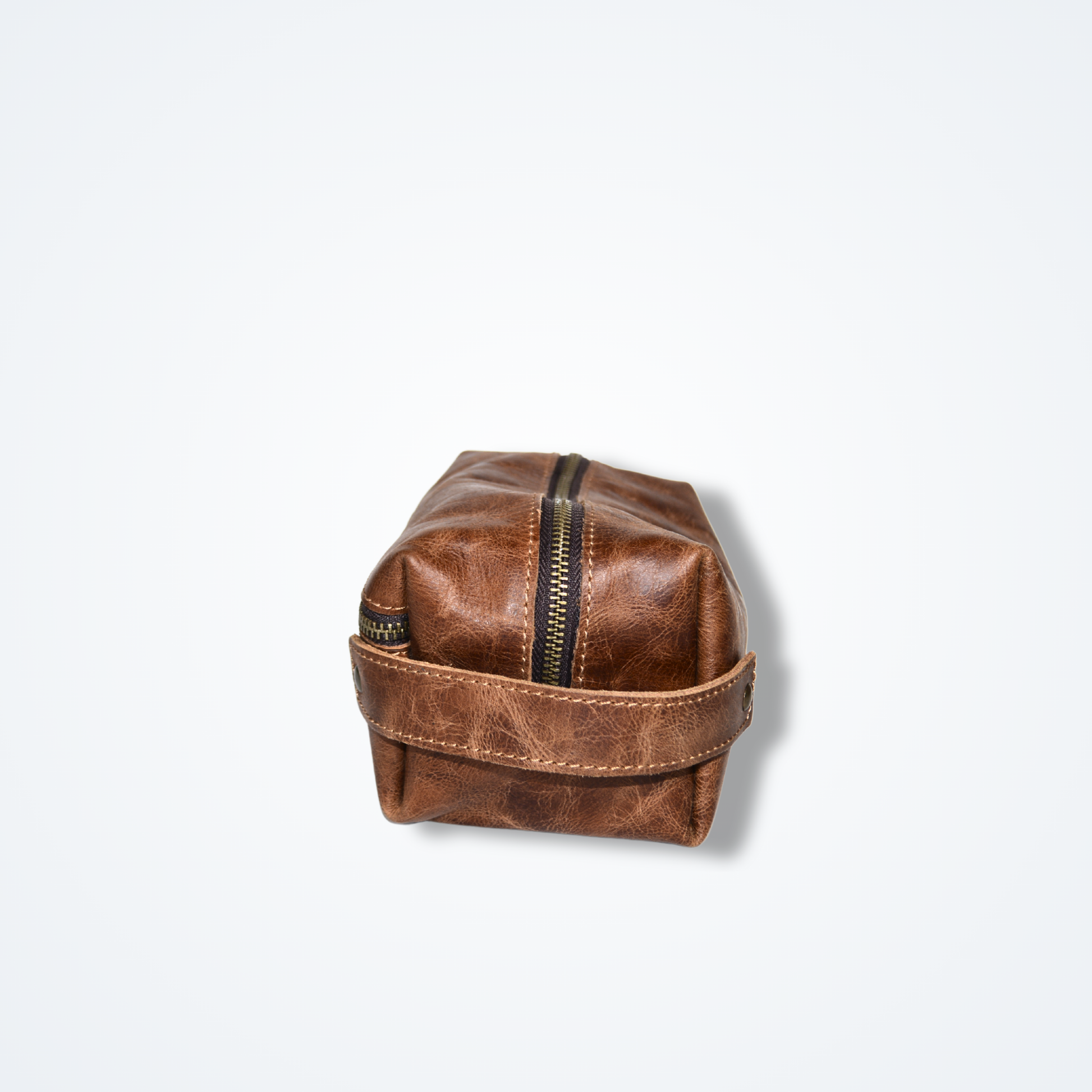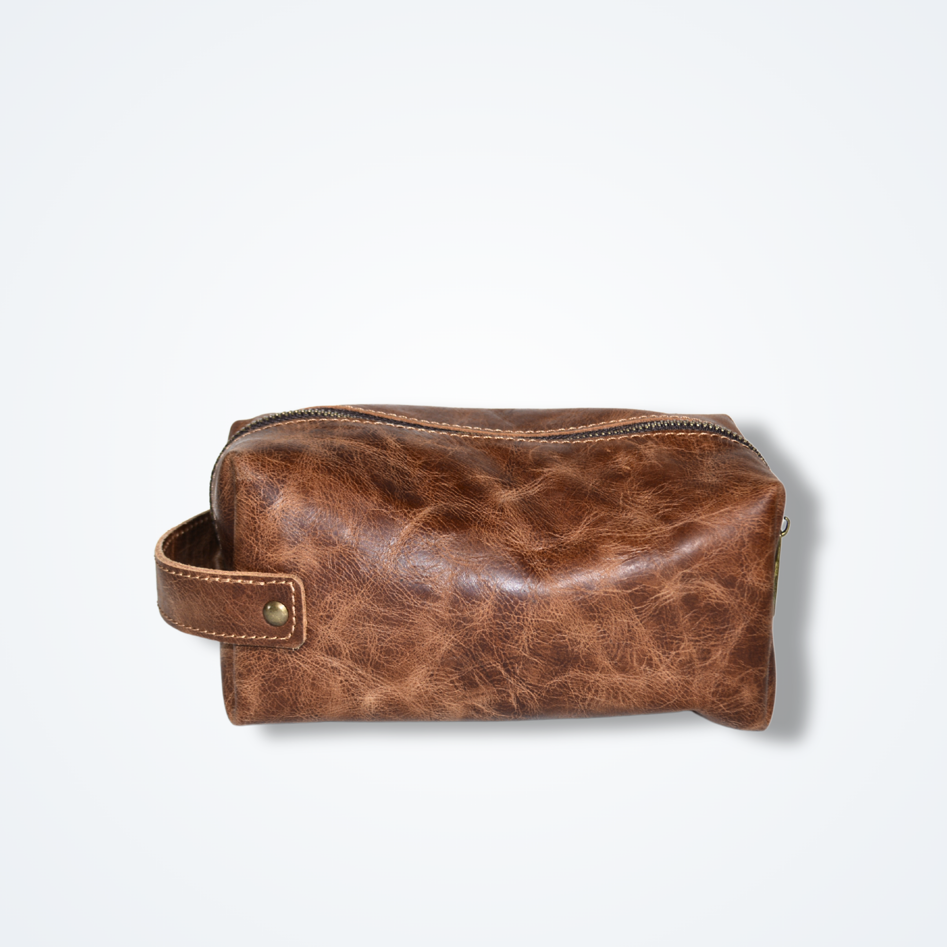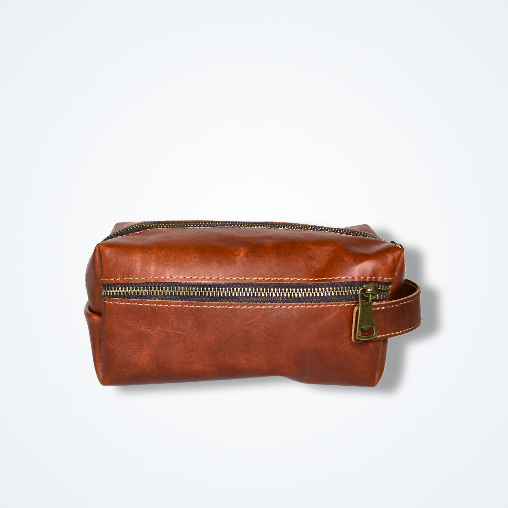 bolsa neceser fabricada en piel de alta calidad. Dispone de un compartimento principal con cierre de zipper, con asa de mano lateral para facilitar su transporte.